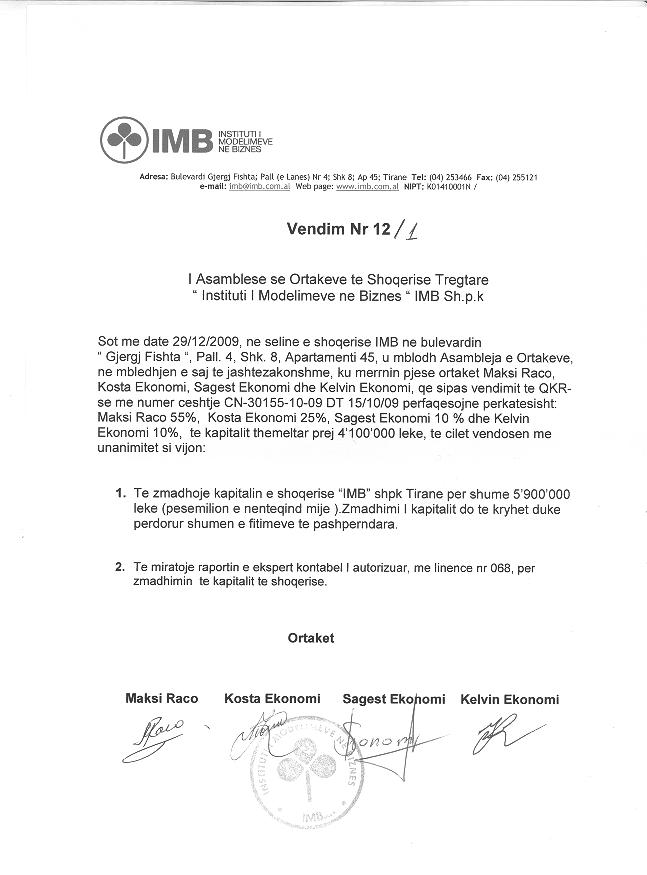 | Emërtime të tjera Tregtare: | INSTITUTI I MODELIMEVE NE BIZNES |