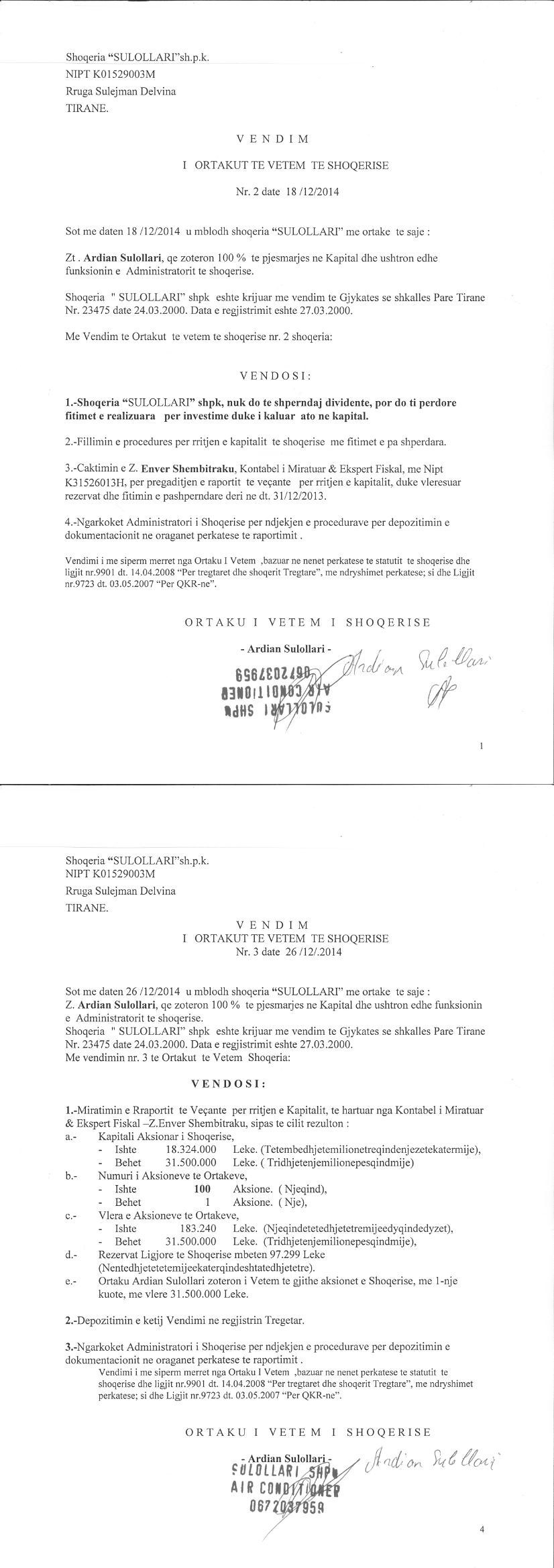 SULOLLARI-KLIMA (Ish "SULOLLARI"; ish "SULOLLARI shpk")