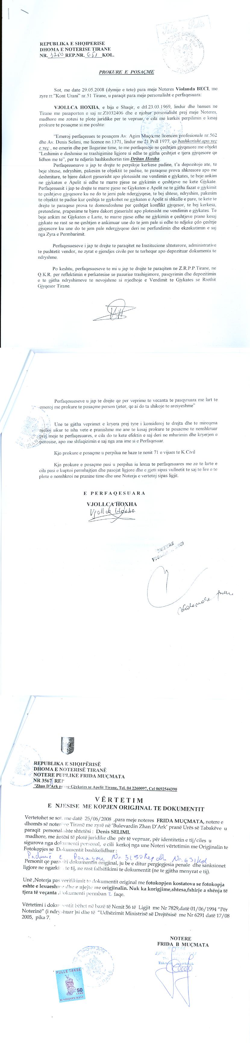 → Ekstrakt Historik i Regjistrit Tregtar date 24.03.2023 → Akt themelimi dhe Statuti i Shoqerise → Kontratë Dhurimi datë 07.10.2002 → Vendim i Ortakut të Vetëm, Zmadhim Kapitali datë 02.12.2005 → Prokurë e Posacme datë 29.05.2008 |
