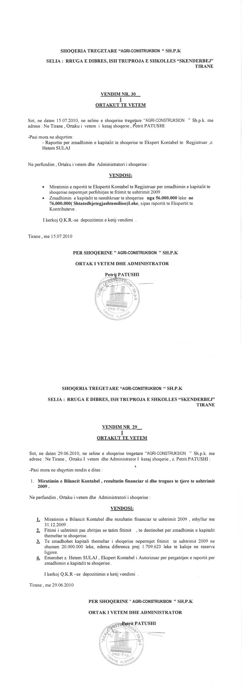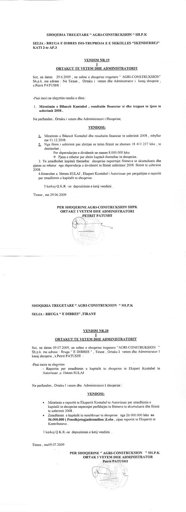 → Ekstrakt historik i regjistrit tregtar 06.07.2022 → Akt themelimi i Shoqerise → Kontrate shitje kuotash 27.03.2003 → Kontrate shitje kuotash 10.01.2001 → Vendimi i ortakut te vetem per rritjen e kapitalit 15.07.2010 → Vendimi i ortakut te vetem per rritjen e kapitalit 29.06.2009 → Ekstrakti Historik i Regjistrit Tregtar date 02.05.2023 → Ekstrakti Historik i Regjistrit Tregtar date 11.08.2023 → Ekstrakt Historik i Regjistrit Tregtar date 02.05.2025 |