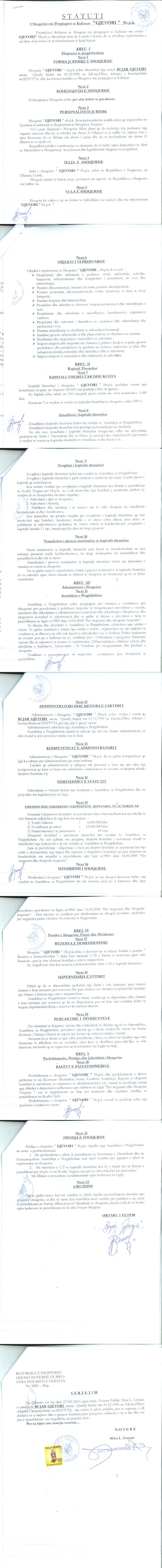 → Ekstrakti Historik i Regjistrit Tregtar date 26.10.2021 → Statuti i Shoqerise → Kontrate e Dhurimit te Kuotave date 29.05.2015 |