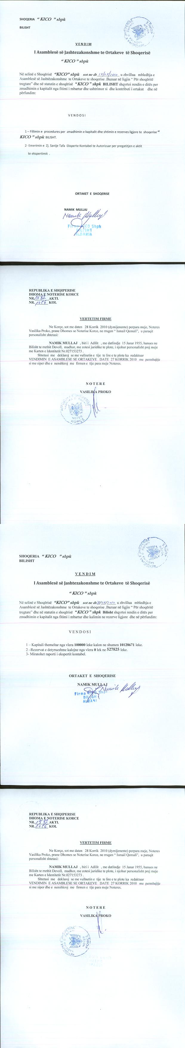 → Ekstrakt historik i regjistrit tregtar date 30.08.2025 → Akti i themelimit dhe statuti → Vendimi i asamblese se ortakeve per zmadhimin e kapitalit date 27.07.2010 |