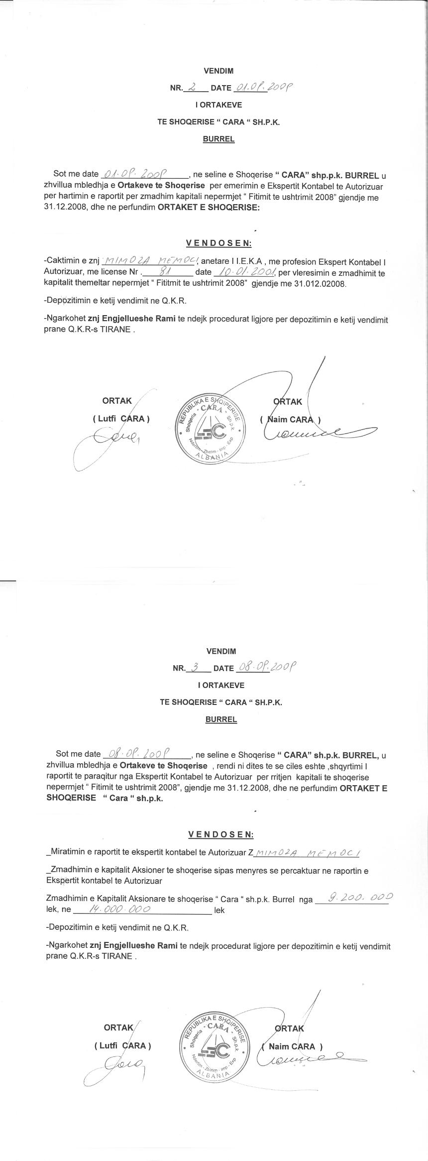 → Ekstrakt historik i regjistrit tregtar 08.06.2022 → Akti i themelimit → Kontrate shitje kuotash 14.02.2007 → Kontrate shit-blerje e pjeseve te kapitalit 29.06.2011 → Vendim i asamblese se ortakeve per vleresimin e zmadhimit te kapitalit 01.09.2009 → Vendim i ortakut te vetem per zmadhimin e kapitalit 03.10.2017 → Ekstrakti Historik i Regjistrit Tregtar date 06.05.2023 → Ekstrakt Historik i Regjistrit Tregtar date 14.09.2024 |