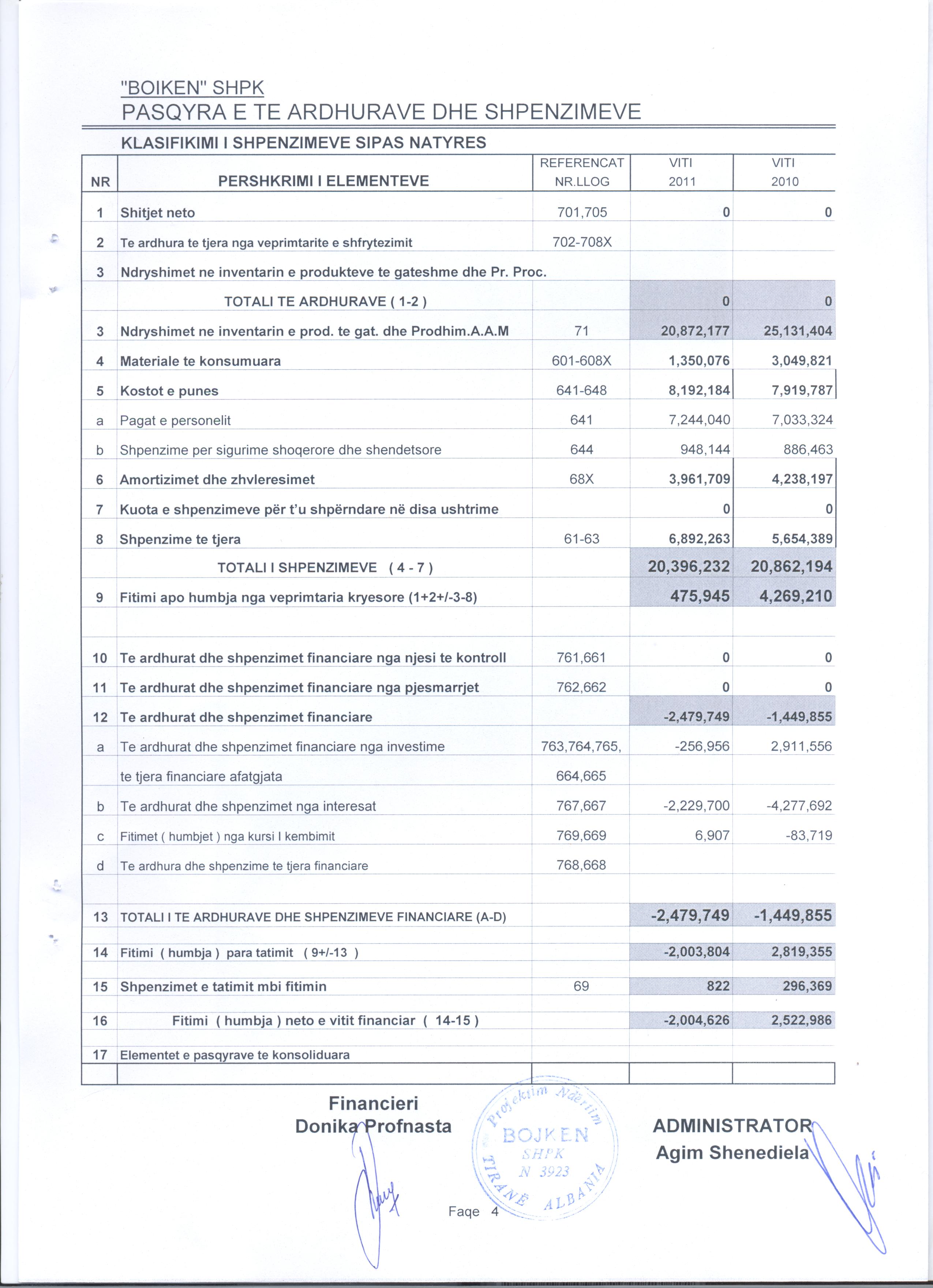 Dokumenta Financiare: Pasqyrat financiare 2010