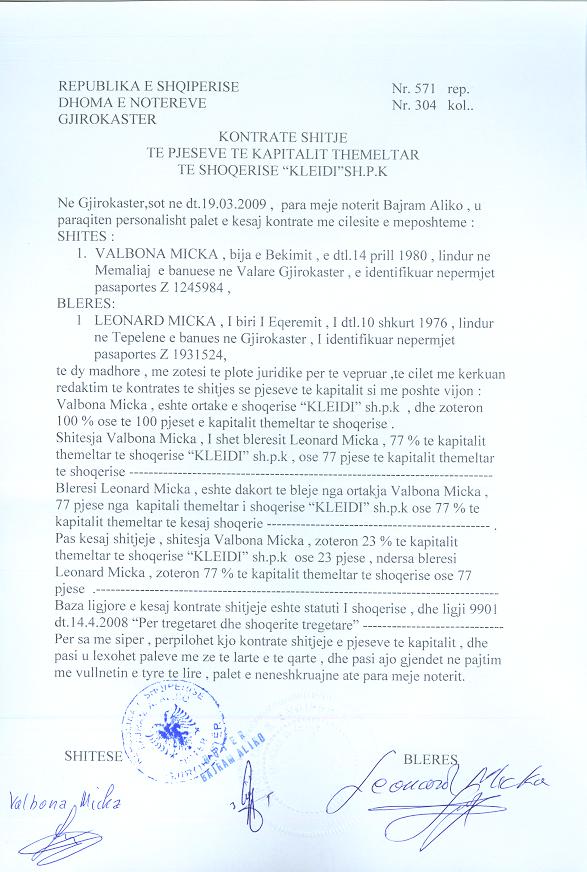 → Ekstrakt historik i regjistrit tregtar date 02.12.2021 → Urdher per heqjen e sekuestros administrative (2013) → Kontrate shitje e pjeseve te kapitalit themeltar (2009) → Ekstrakt Historik i Regjistrit Tregtar date 13.06.2025 |