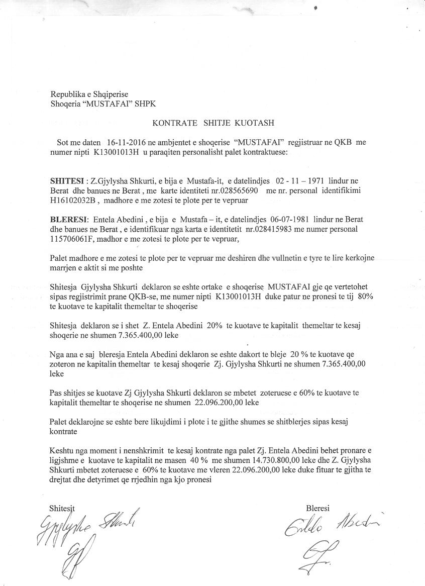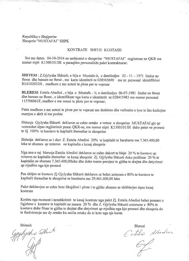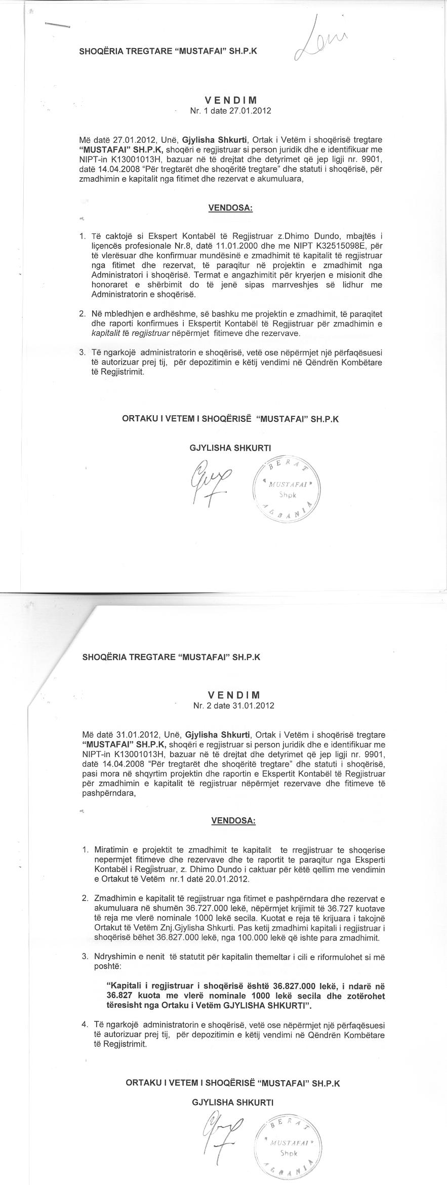 → Ekstrakti Historik i Regjistrit Tregtar date 19.11.2021 → Statuti i Shoqerise → Vendim per rritjen e kapitalit date 27.01.2012 → Kontrate e Shitjes se Kuotave date 04.10.2016 → Kontrate e Shitjes se Kuotave date 16.11.2016 |