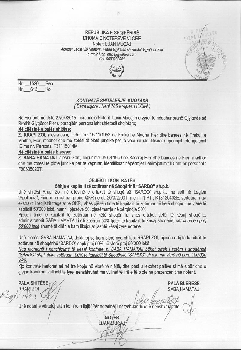 → Ekstrakt historik i regjistrit tregtar 28.04.2021 → Kontrate shitblerje kuotash 27.04.2015 → Ekstrakt Historik i Regjistrit Tregtar date 10.05.2023 → Ekstrakti Historik i Regjistrit Tregtar date 10.08.2023 → Ekstrakt historik i regjistrit tregtar date 20.09.2025 |