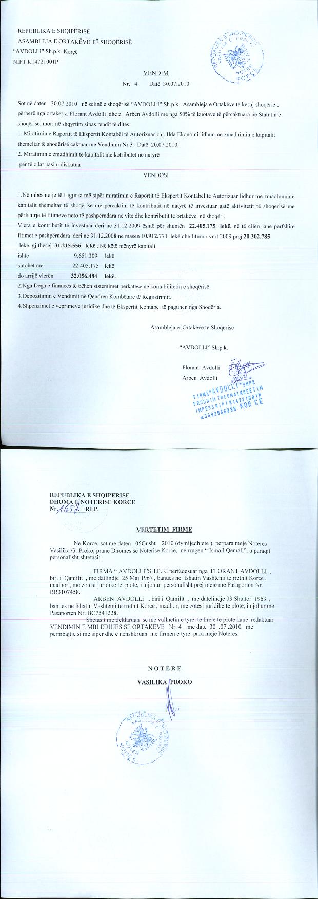 | Emërtime të tjera Tregtare: | AVDOLLI - SHPK |
