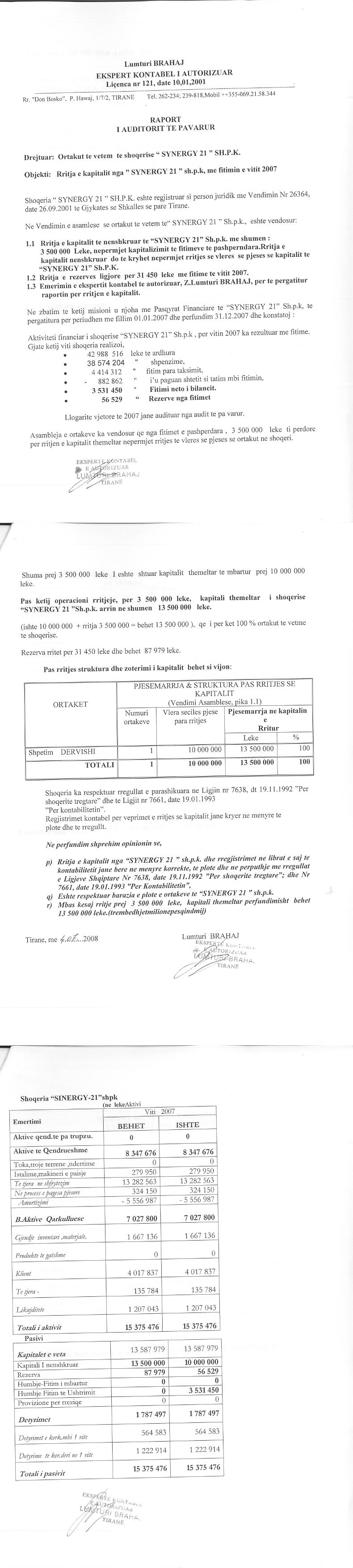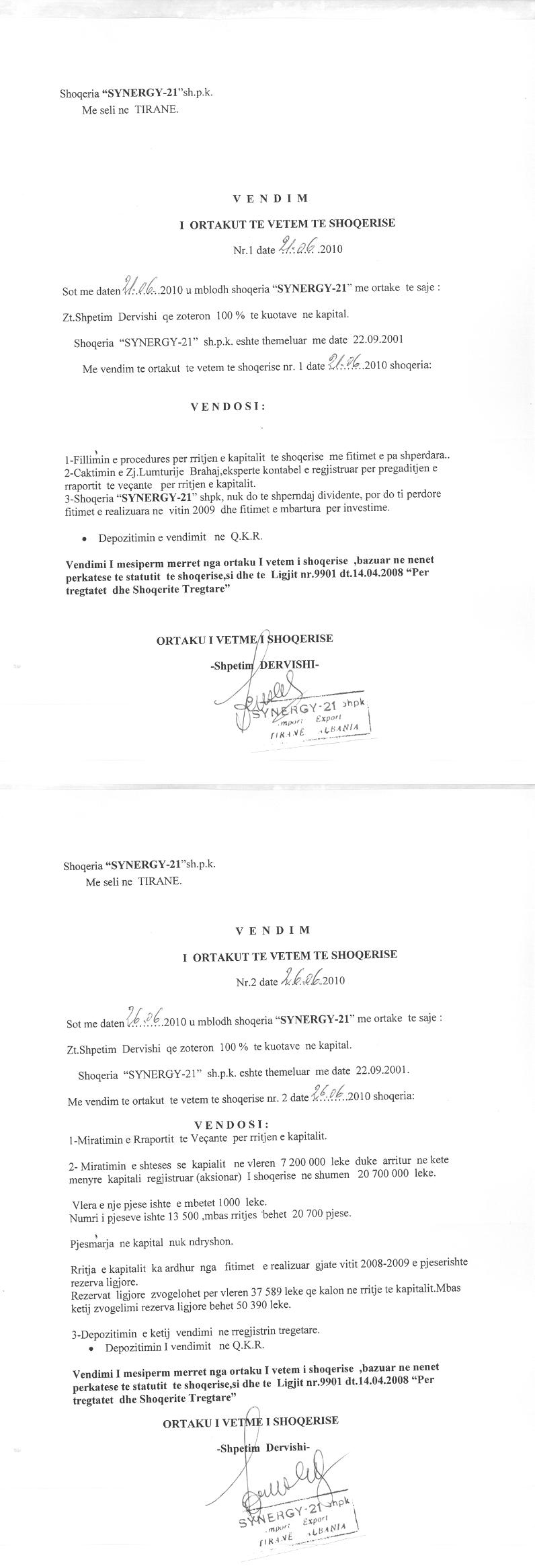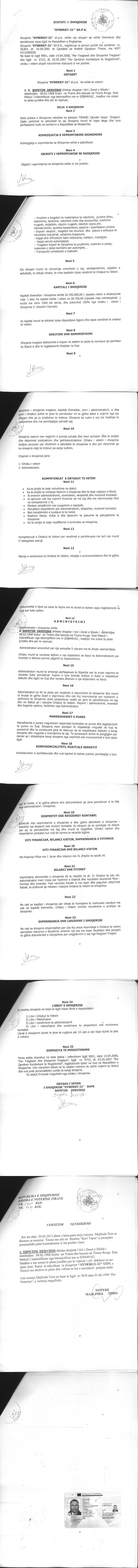 → Ekstrakti Historik i Regjistrit Tregtar date 20.06.2024 → Statuti fillestar i shoqerise dhe dokumenta te ndryshme → Statuti i perditesuar i shoqerise → Raporti i auditorit te pavarur date 04.07.2008 → Vendim i ortakut te vetem te shoqerise date 26.06.2010 → Vendim i ortakut te vetem te shoqerise date 24.07.2014 |
