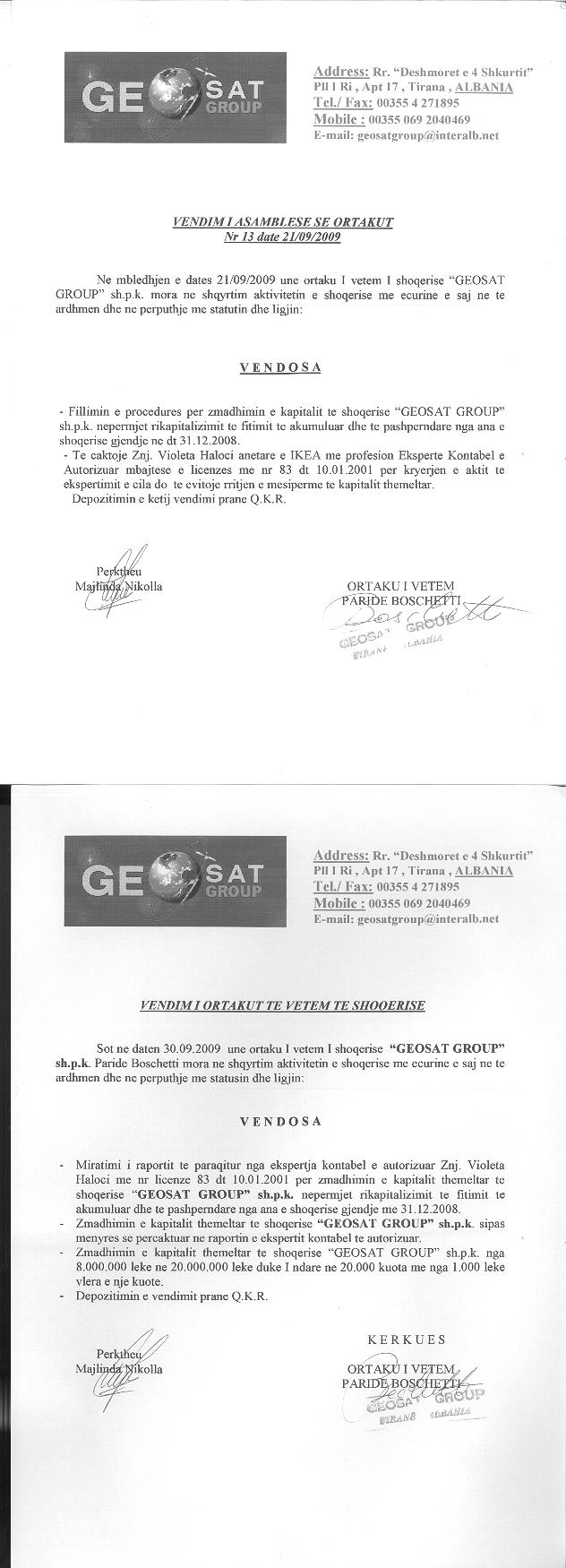 | Emërtime të tjera Tregtare: | GEOSAT GROUP |