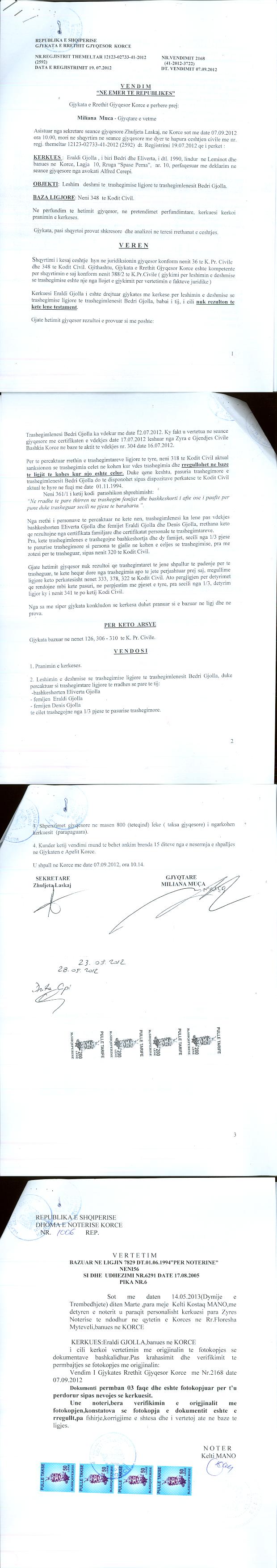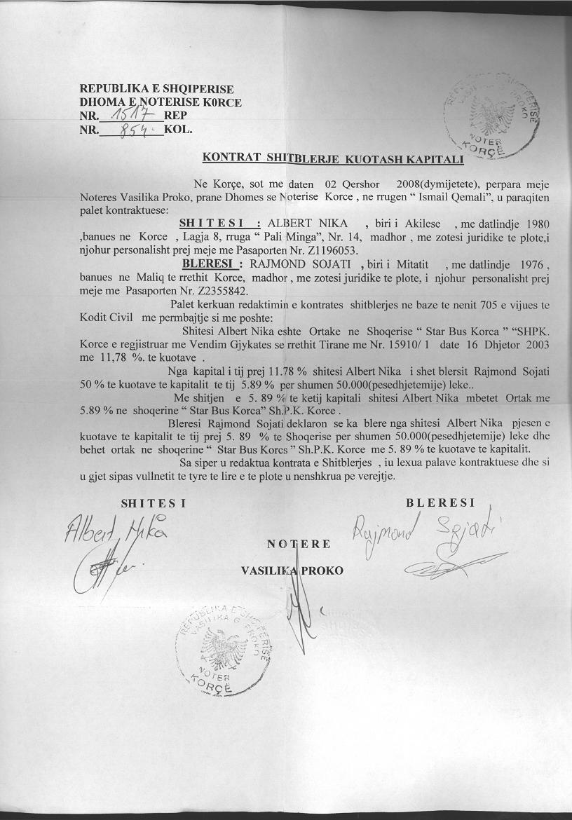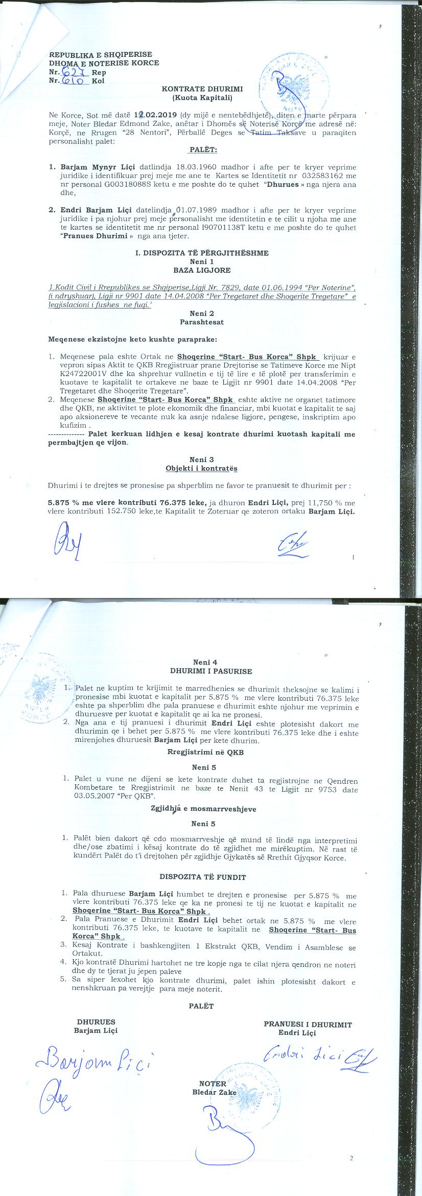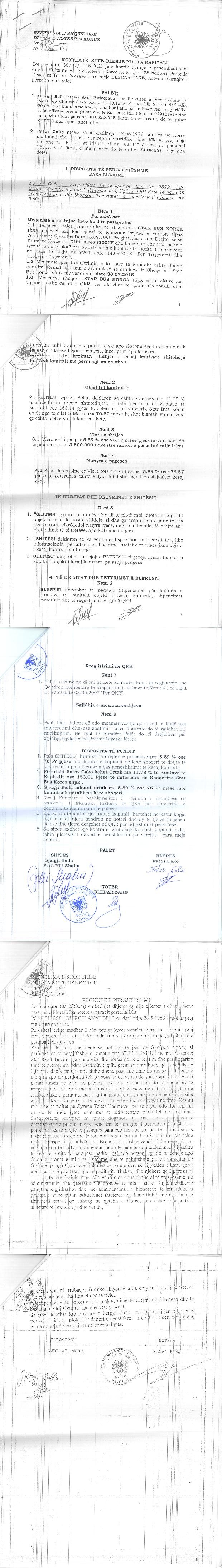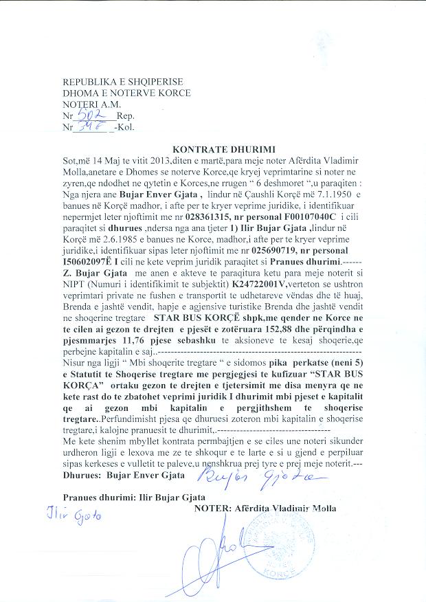 → Ekstrakt historik i regjistrit tregtar date 29.01.2022 → Akti i themelimit dhe statuti → Vendim i Gjykates se Rrethit Gjyqesor Korce per leshimin e aktit te trashegimise, date 07.09.2012 → Kontrate shitje dhe pjestim vullnetar kuotash date 10.12.2003 → Kontrate shit-blerje kuota kapitali date 04.07.2017 → Kontrate shitje date 04.03.2008 → Kontrate shitblerje date 26.01.2012 → Kontrate dhurim kapitali date 14.05.2013 → Kontrate dhurimi date 13.03.2014 → Kontrate shit-blerje kuotash date 25.07.2014 → Kontrate shitje date 29.08.2014 → Kontrate shitblerje date 13.02.2015 → Kontrate shitblerje 30.07.2015 → Kontrate shitje date 22.12.2015 → Kontrate shit-blerje 04.07.2018 → Kontrate dhurimi date 18.09.2018 → Kontrate dhurimi kuotash date 12.02.2019 → Kontrate shitje kuotash date 31.12.2020 → Kontrate dhurimi kuotash date 04.02.2021 → Kontrate shitblerje kuotash 02.06.2008 → Kontrate dhurimi date 14.05.2013 |