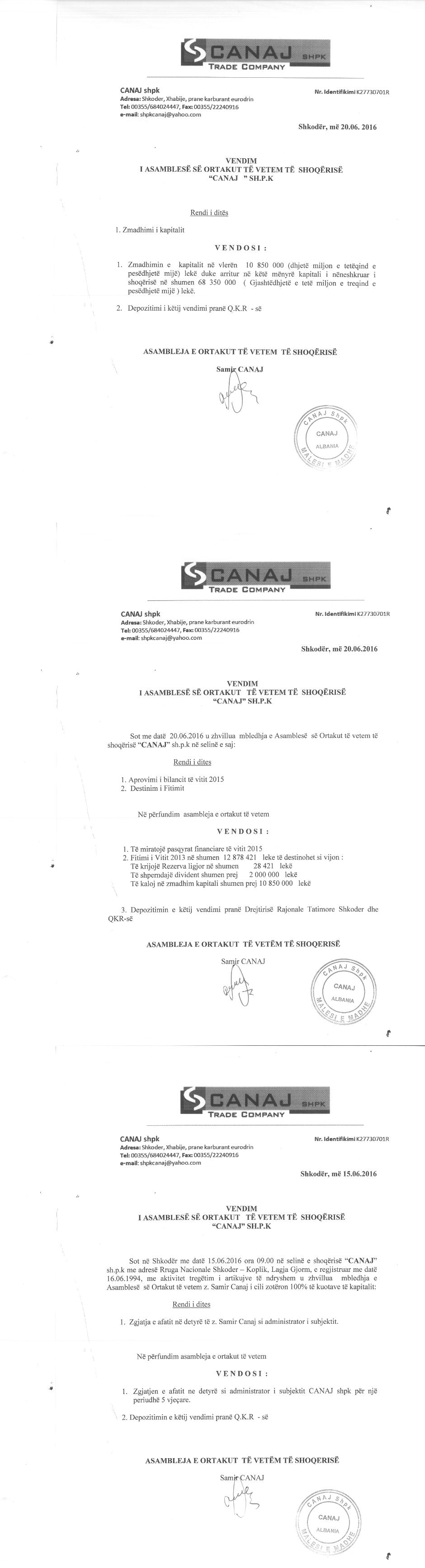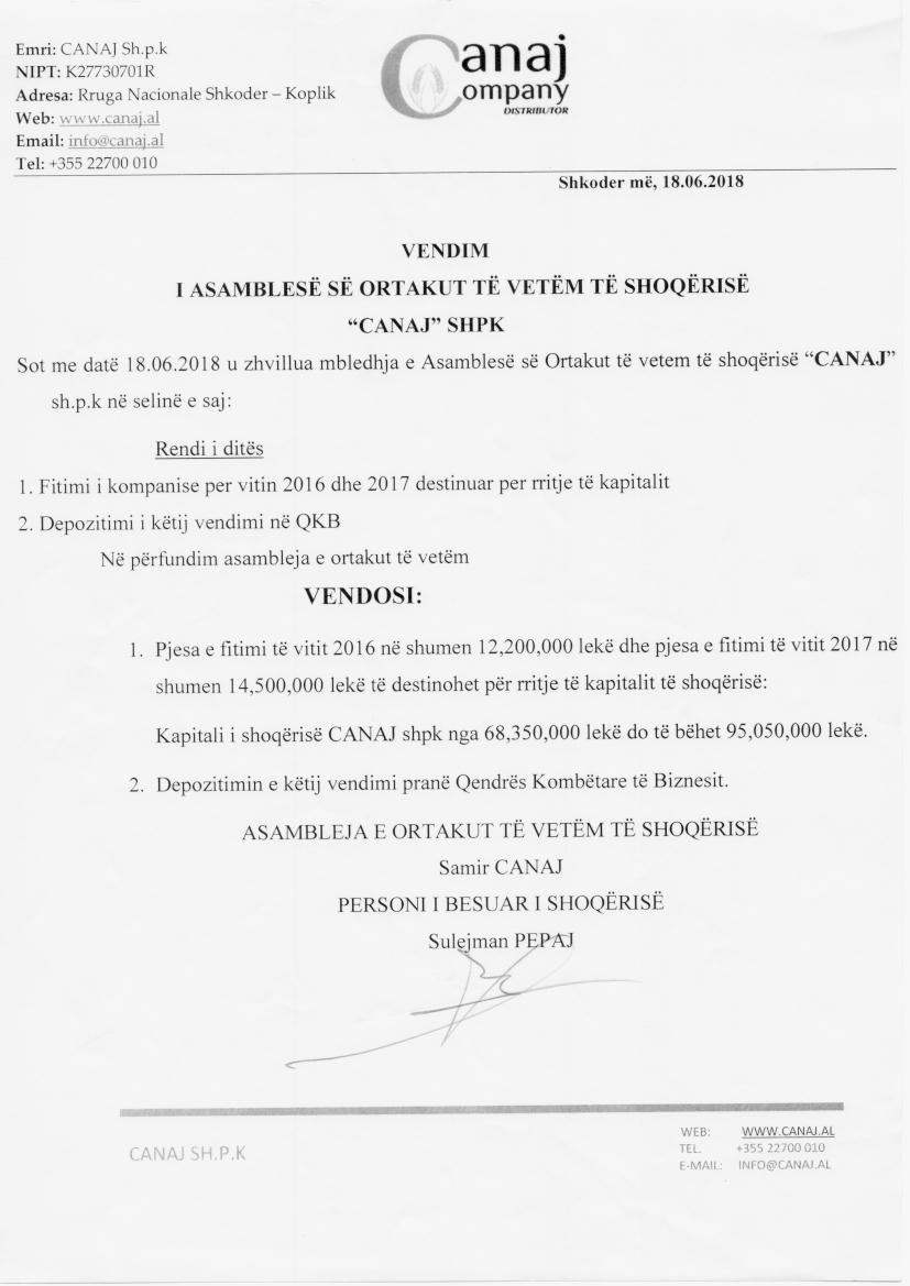 | Emërtime të tjera Tregtare: | CANAJ SHPK |