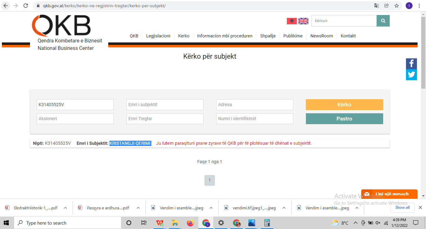 → Subjekti nuk ka te dhena, date 12.01.2022 |