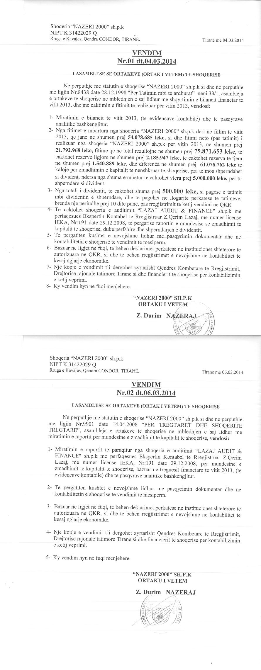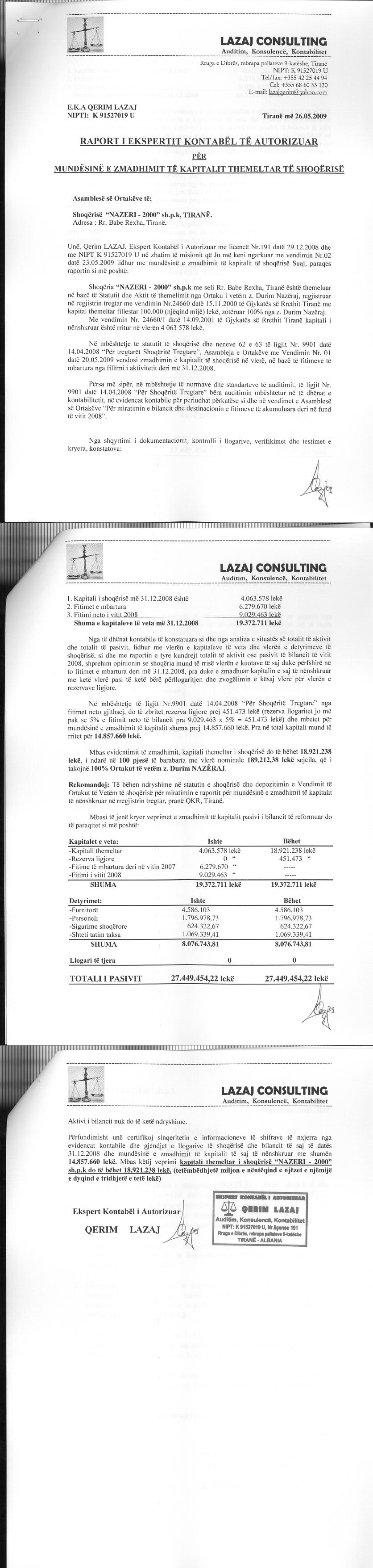 → Ekstrakt historik i regjistrit tregtar 15.06.2021 → Akti i themelimit → Vendimi i asamblese se ortakeve per zmadhimin e kapitalit 04.03.2014 → Raporti per zmadhimin e kapitalit 26.05.2009 |