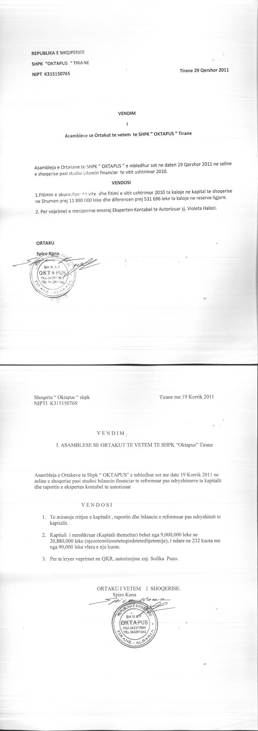 → Ekstrakt historik i regjistrit tregtar 05.10.2020 → Akti i themelimit dhe statuti → Vendimi i ortakut te vetem per rritjen e kapitalit 29.06.2011 |