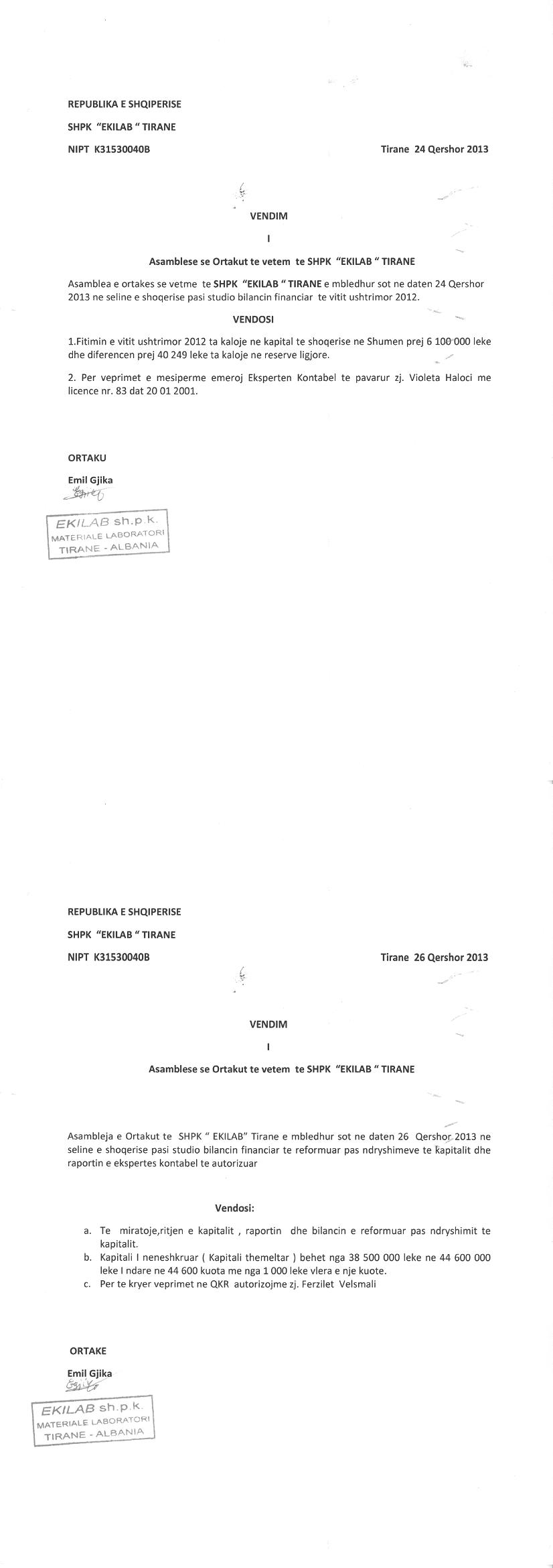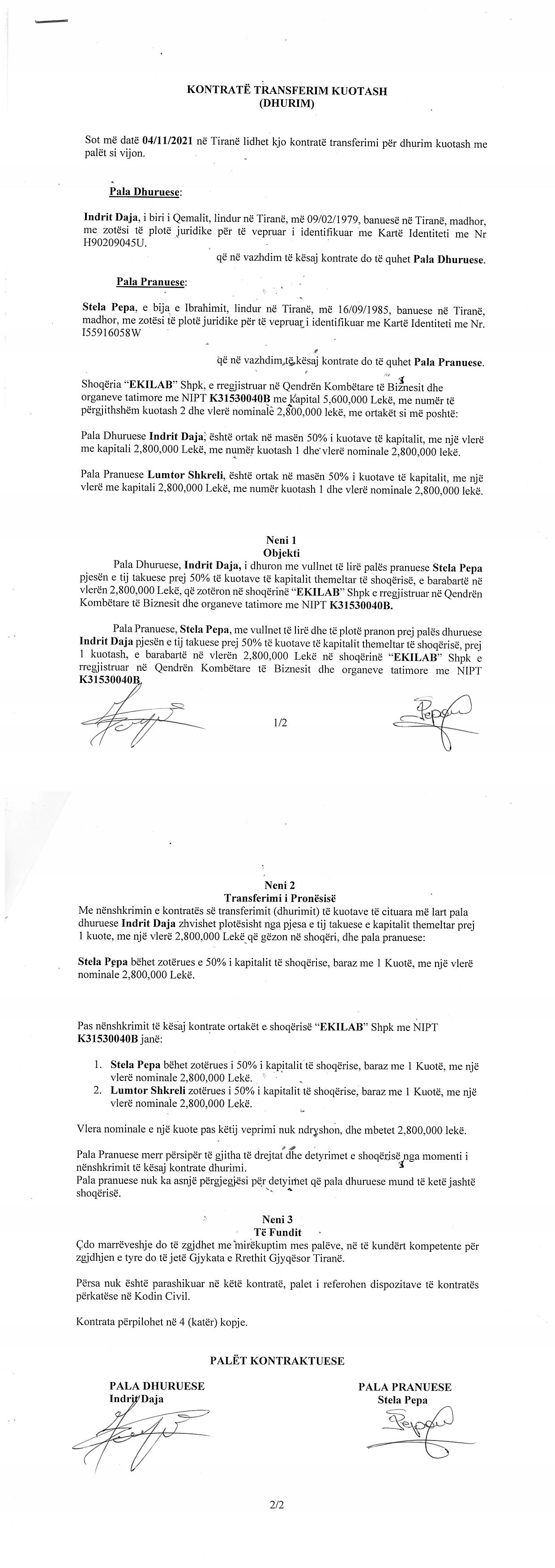 | Emërtime të tjera Tregtare: | EKILAB shpk |