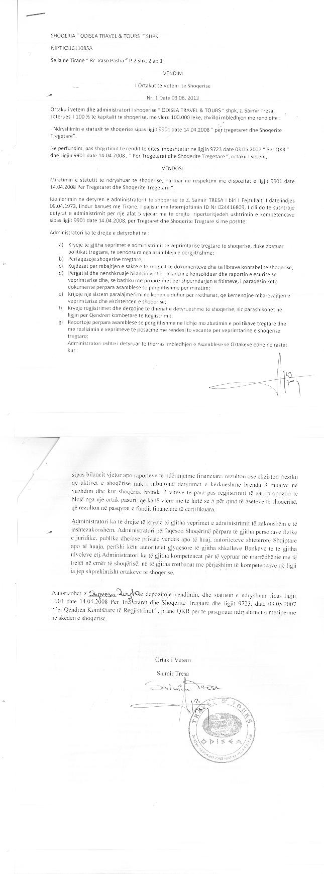 | Emërtime të tjera Tregtare: | ODISEA TRAVEL & TOURS |