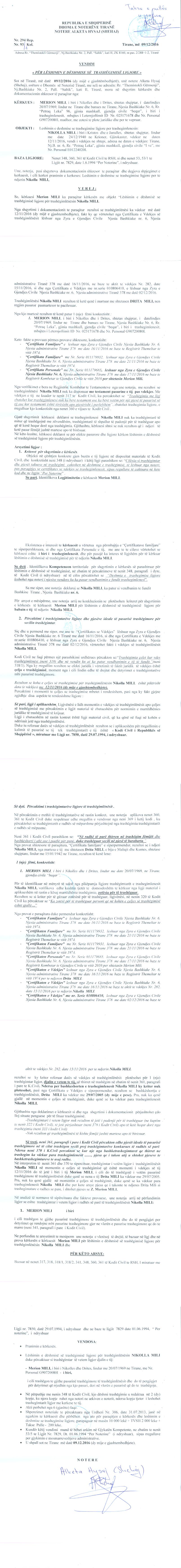 se Trashegimise Ligjore per trashegimlenesin Nikolla Mili, duke percaktuar si