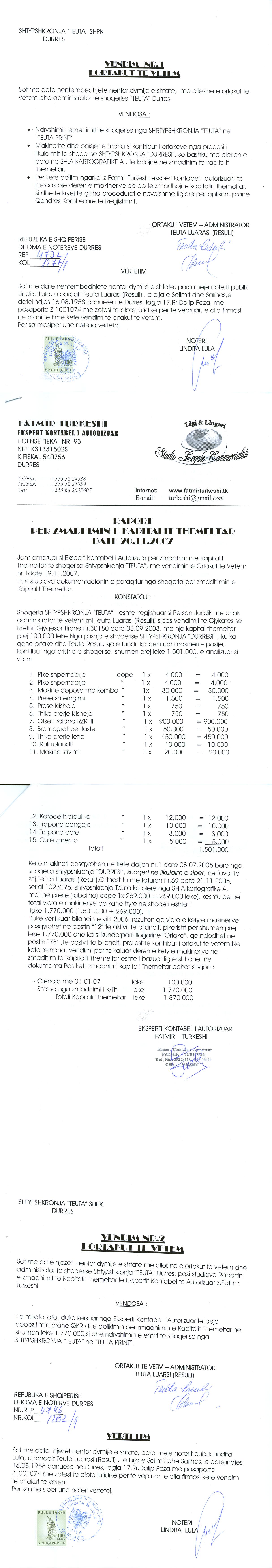 → Ekstrakt Historik i Regjistrit Tregtar, date 13.01.2022 → Dokumenta te ndryshme nder vite → Vendimi i asamblese per rritje te kapitalit, date 19.11.2007 → Vendimi i asamblese se ortakeve, date 21.03.2018 |