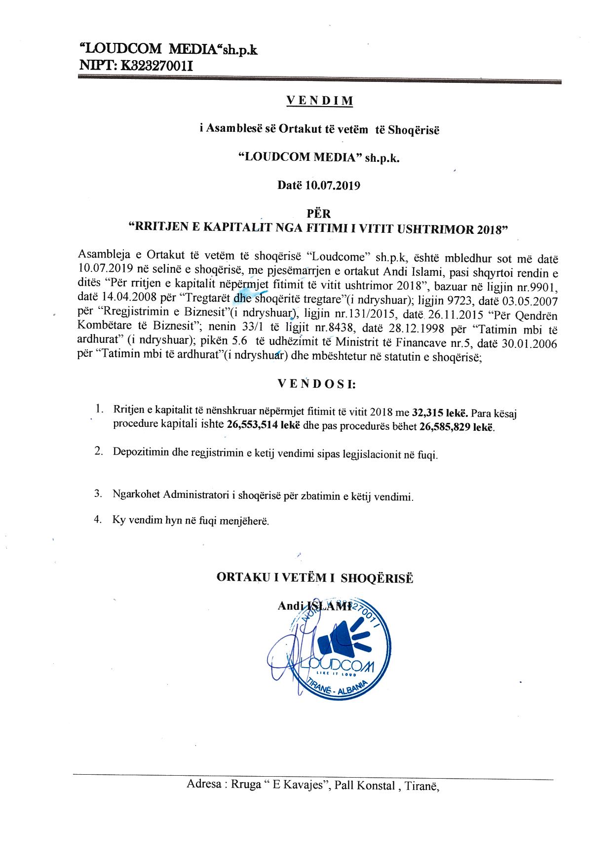 | Emërtime të tjera Tregtare: | Loudcom Media |