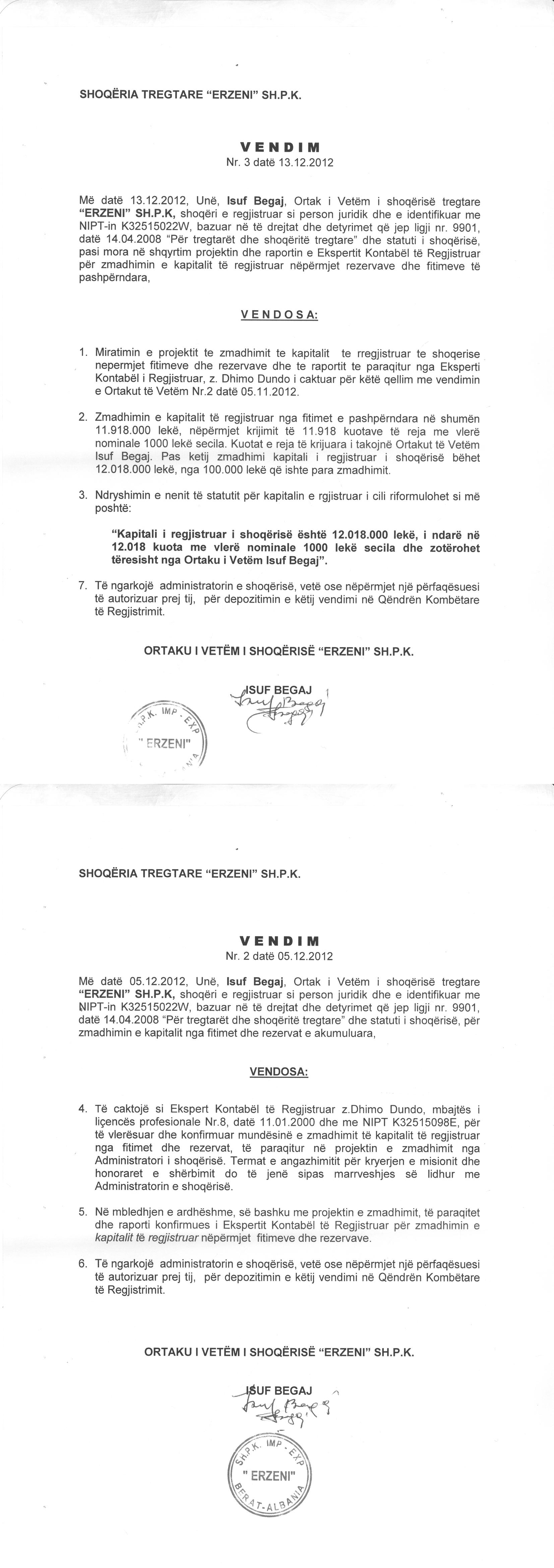 | Emërtime të tjera Tregtare: | ERZENI SHPK |