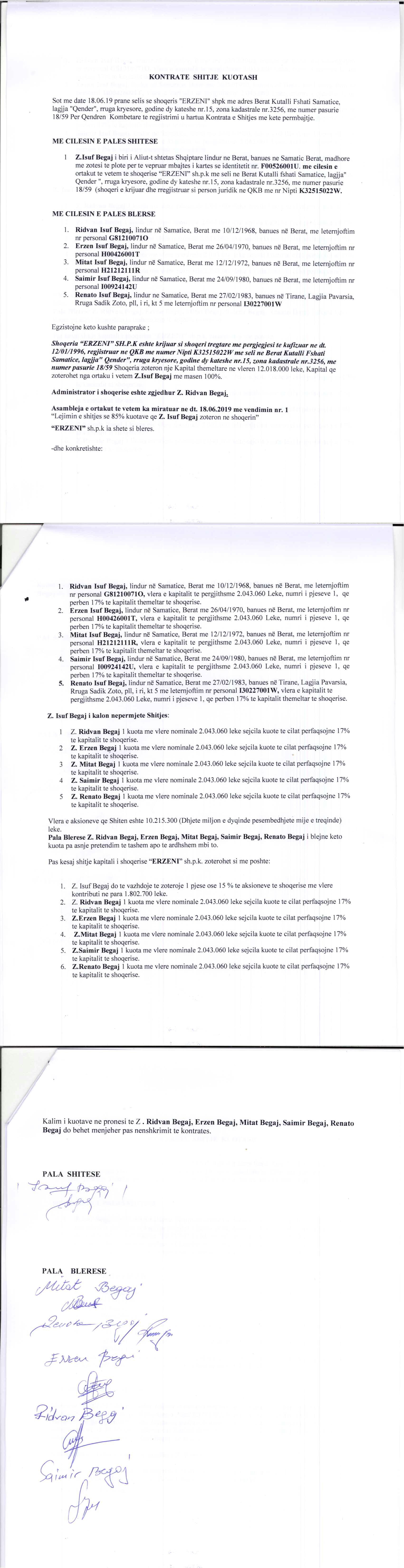 → Ekstrakt Historik i Regjistrit Tregtar date 09.10.2023 → Akt themelimi dhe Statut i Shoqerise → Dokumente të Ndryshme → Vendim i Ortakut të Vetëm, Zmadhim Kapitali datë 13.12.2012 → Urdhër për Vënien e Sekuestros datë 01.11.2018 → Urdhër për Heqjen e Sekuestros datë 07.11.2018 → Urdhër për Vënien e Sekuestros datë 01.02.2021 → Urdhër për Heqjen e Sekuestros datë 25.02.2021 → Kontratë Shitje Kuotash datë 18.06.2019 → Ekstrakt Historik i Regjistrit Tregtar date 17.04.2024 → Të dhënat e Investimit, Financimet Nga IPARD - Aksesuar nga Agjencia për Zhvillim Bujqësor dhe Rural AZHBR datë 17.04.2024 |