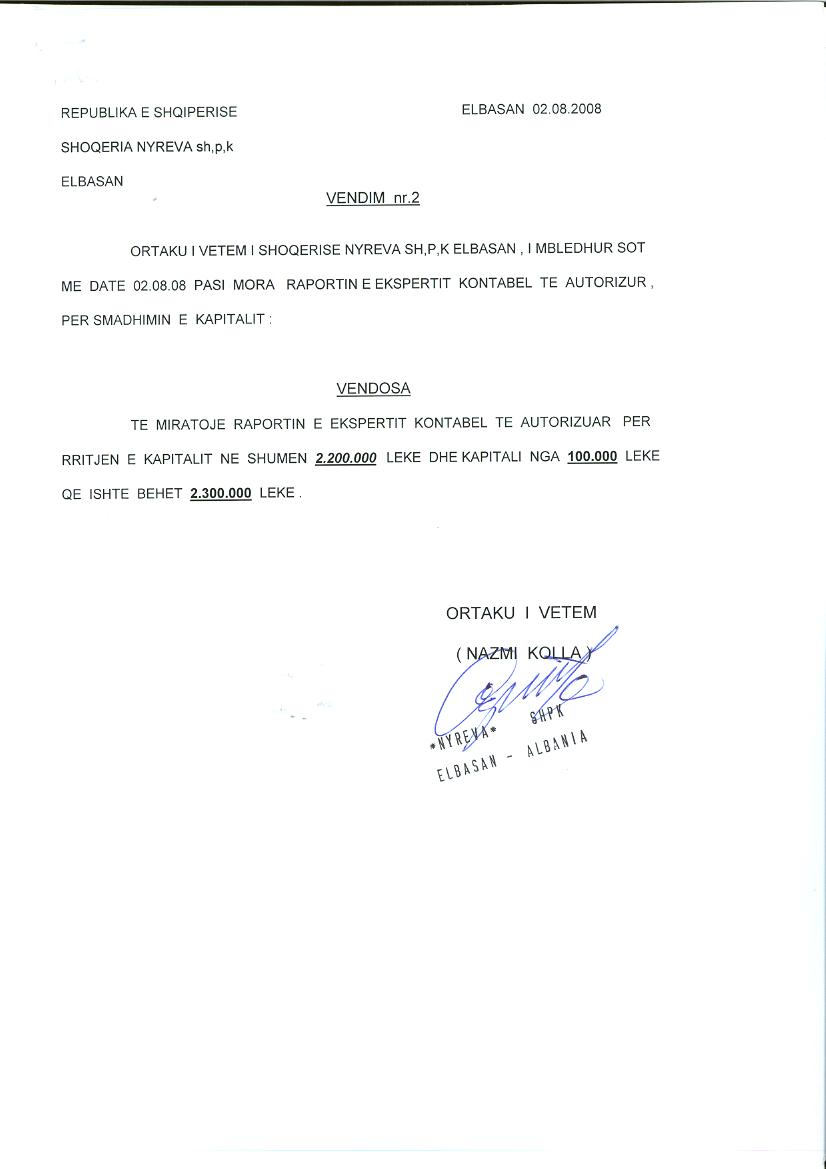 → Ekstrakti Historik i Regjistrit Tregtar date 22.11.2021 → Statuti i Shoqerise → Vendim i ortakut te vetëm per rritjen e kapitalit date 02.08.2008 |