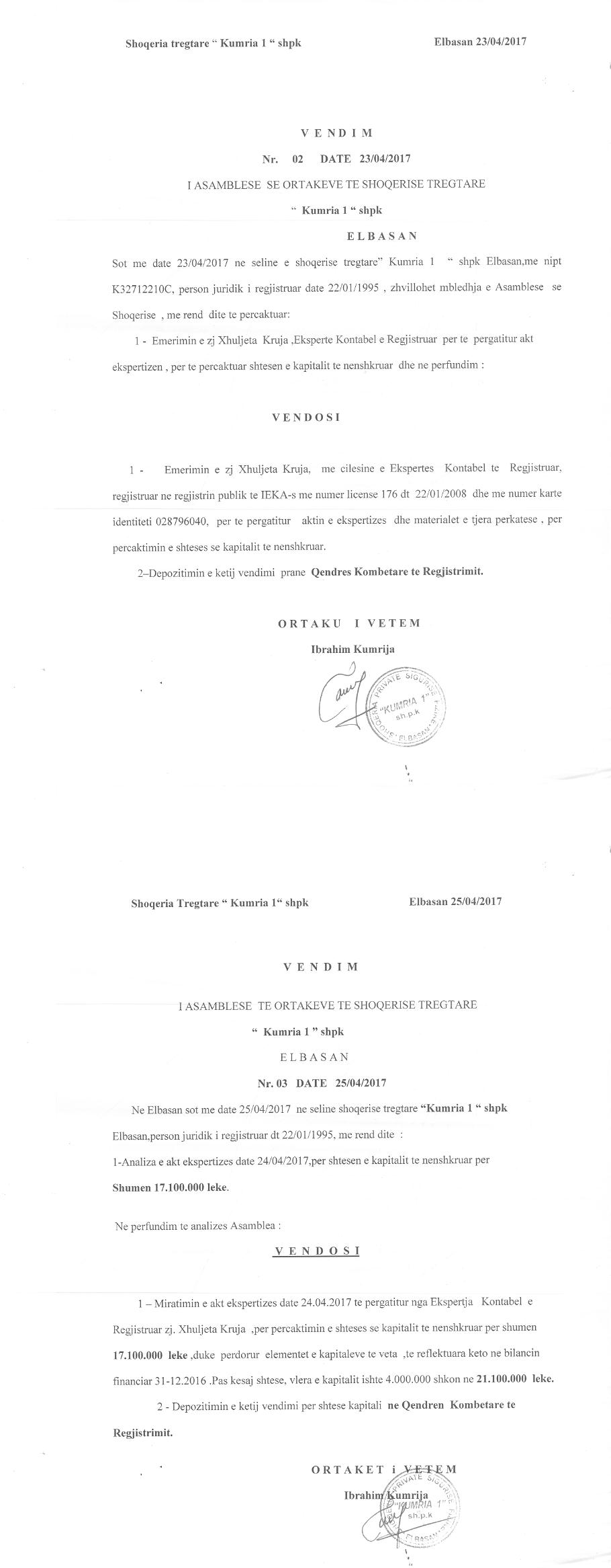 → Ekstrakt historik i regjistrit tregtar 28.05.2021 → Akti i themelimit dhe statuti → Vendimi i asamblese se ortakeve per miratimin e akt-ekspertizes per shtimin e kapitalit 25.04.2017 |