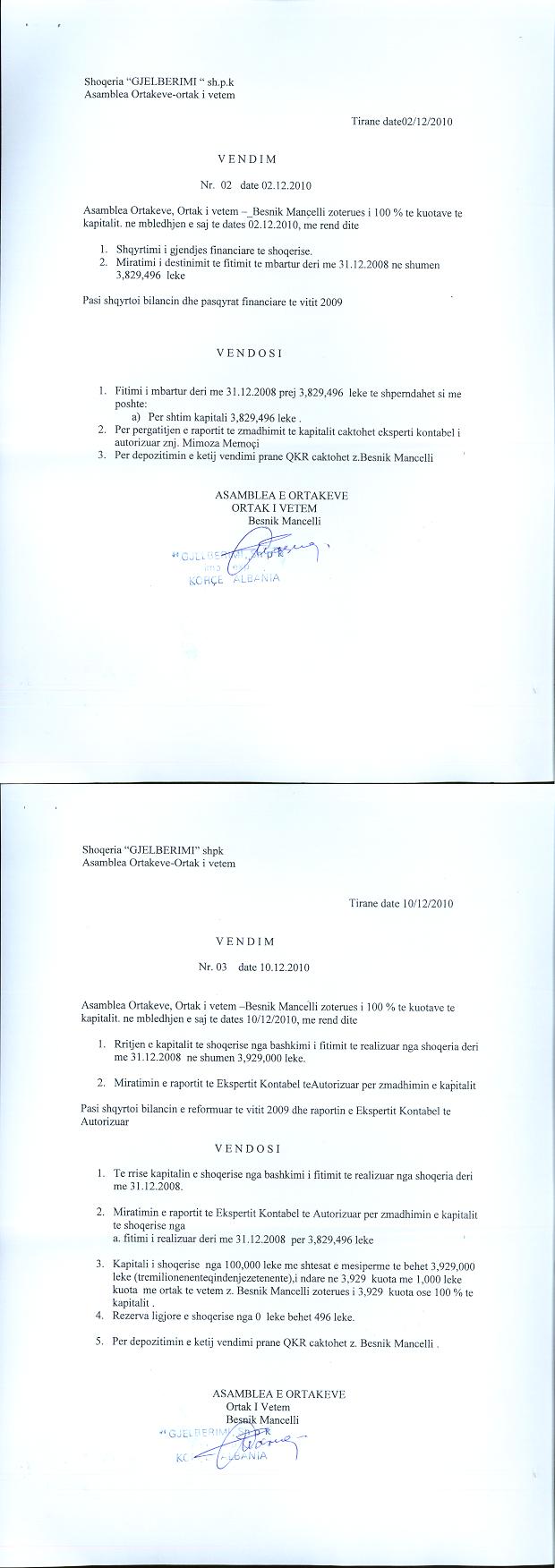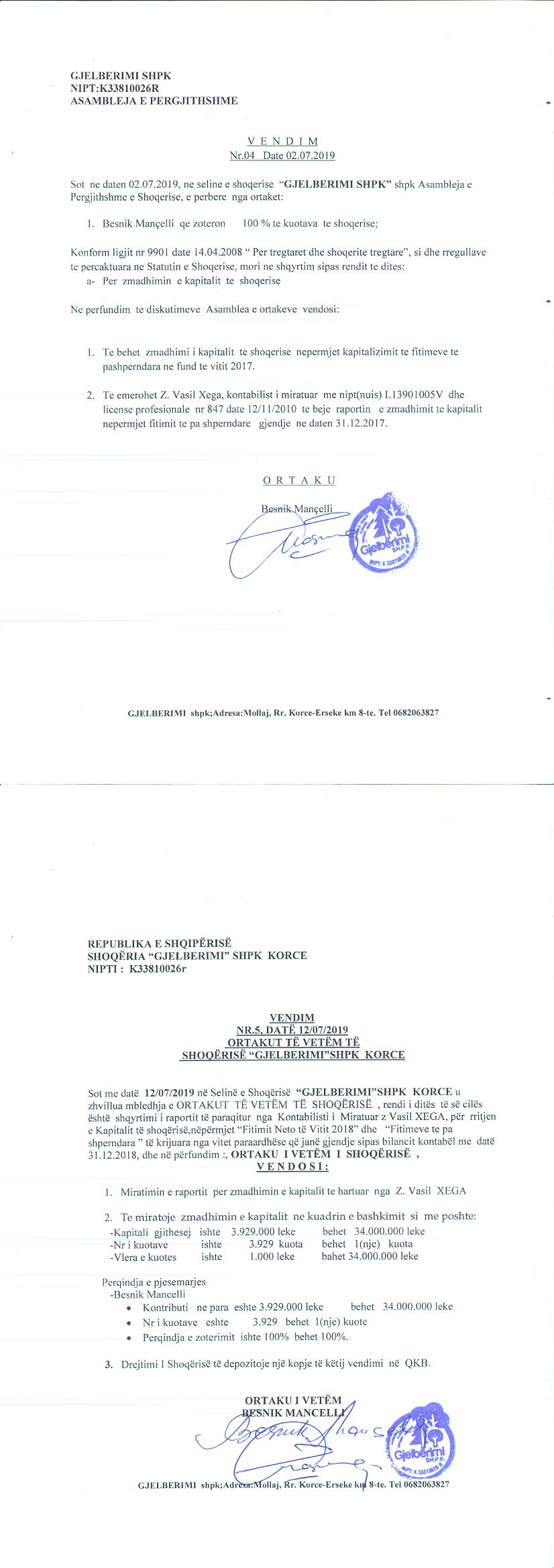 → Ekstrakti Historik i Regjistrit Tregtar date 10.11.2021 → Statuti i Shoqerise → Kontrate e Shitjes se Kuotave date 09.04.2008 → Vendim i Asamblese se Pergjithshme per rritjen e kapitalit date 02.12.2010 → Vendim i Asamblese se Pergjithshme per rritjen e kapitalit date 02.07.2019 → Ekstrakt Historik i Regjistrit Tregtar date 17.04.2024 → Të dhënat e Investimit, Financimet Nga IPARD - Aksesuar nga Agjencia për Zhvillim Bujqësor dhe Rural AZHBR datë 17.04.2024 |
