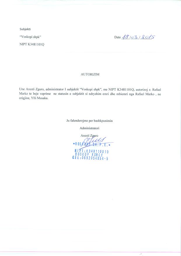 Dokument Autorizimi date 18.03.2015