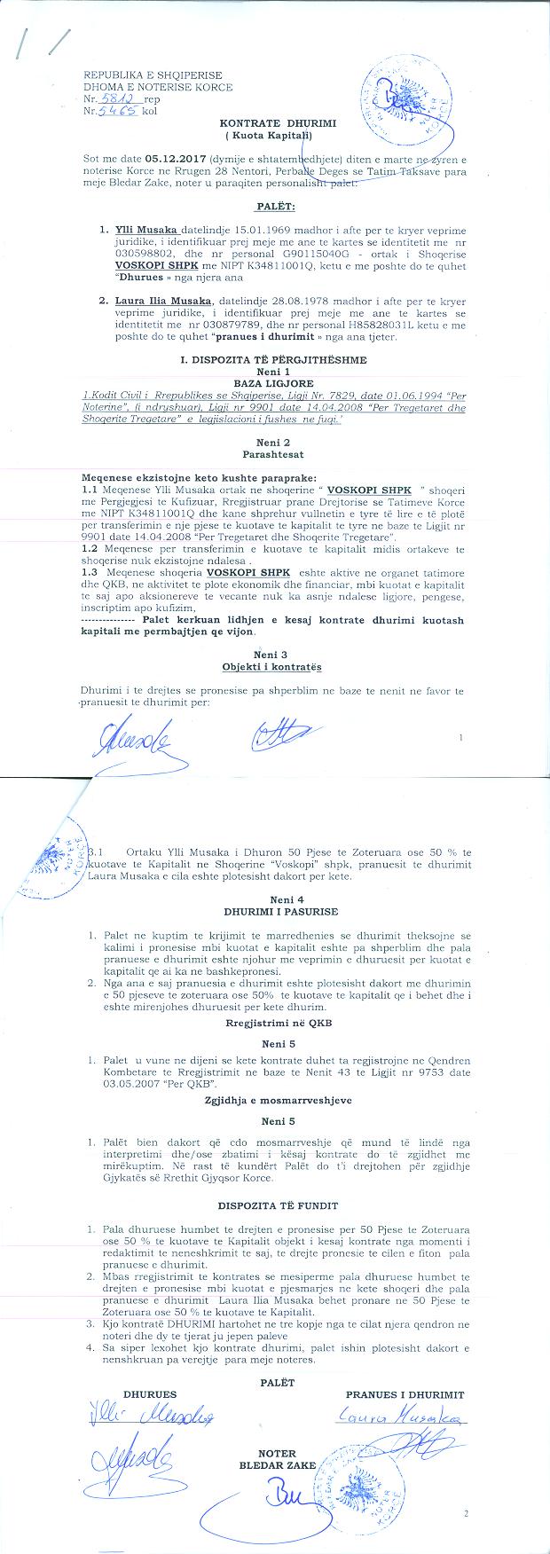 Kontrate e Dhurimit te Kuotave date 05.02.2017