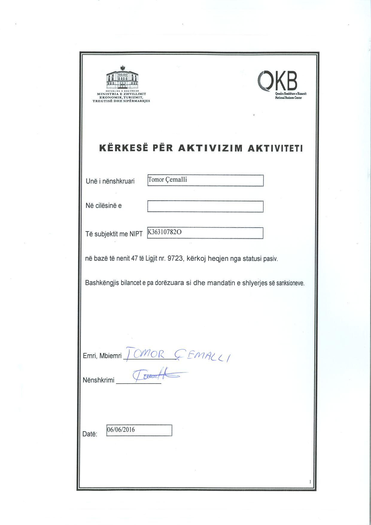 → Ekstrakt historik i regjistrit tregtar 03.09.2021 → Kerkesa per heqjen nga statusi i pezulluar 06.06.2016 |