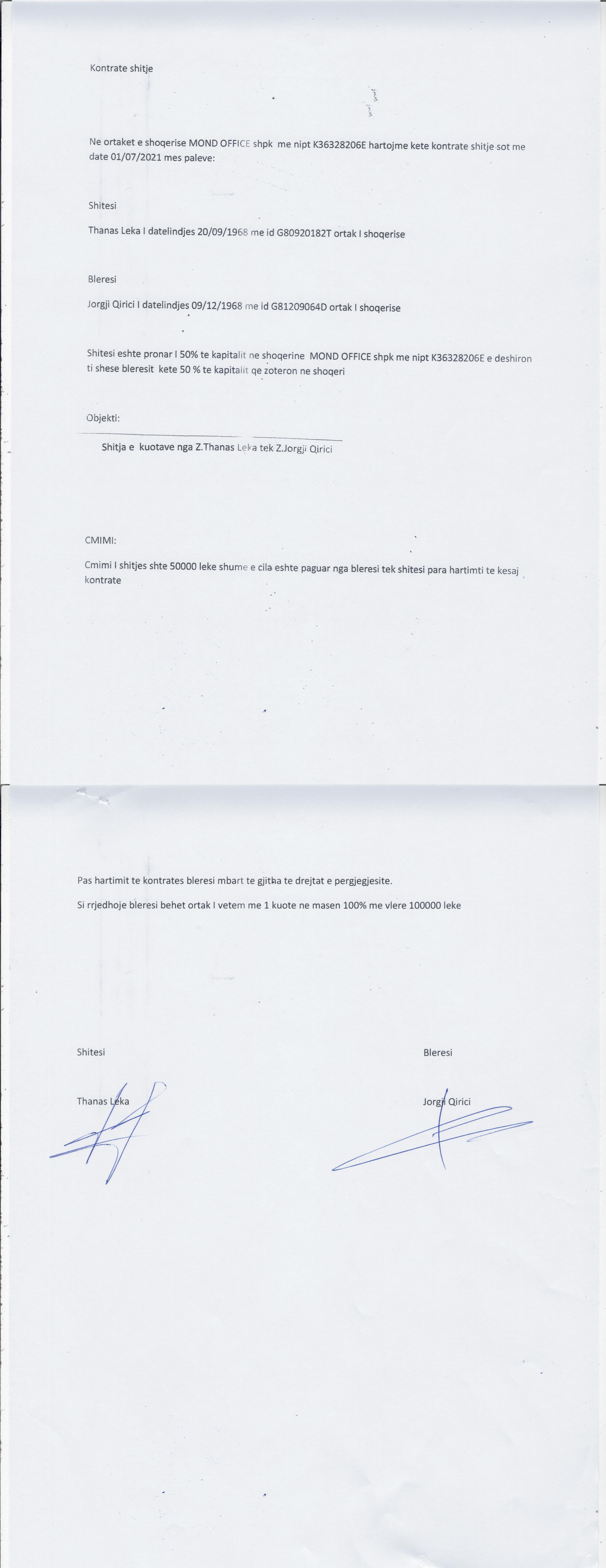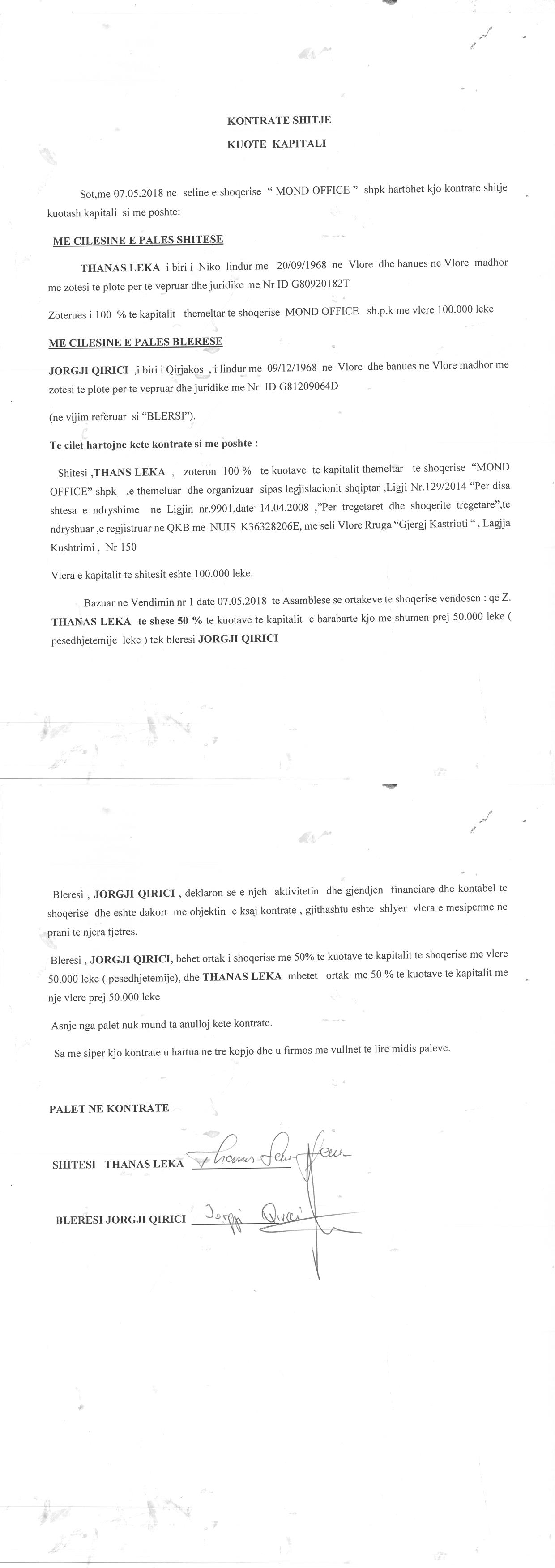→ Ekstrakti Historik i Regjistrit Tregtar date 03.11.2021 → Statuti i Shoqerise → Kontrate e Shitjes se Kuotave date 07.05.2018 → Kontrate e Shitjes se Kuotave date 01.07.2021 |