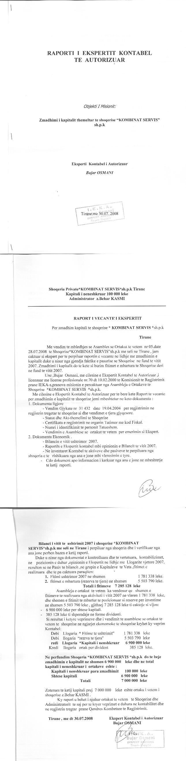 → Ekstrakt historik i regjistrit tregtar date 24.12.2021 → Raporti i ekspertit kontabel per zmadhimin e kapitalit date 30.07.2008 → Kontrate dhurimi e kuotave te kapitalit date 02.07.2018 |