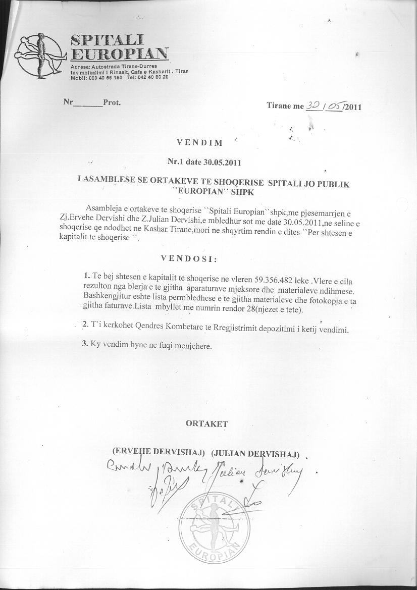 → Ekstrakt historik i regjistrit tregtar 30.07.2020 → Statuti i shoqerise → Kontrate shitje kuotash te kapitalit → Kontrate per shit-blerjen e kuotave 16.03.2017 → Vendimi i asamblese se ortakeve per shtimin e kapitalit 30.05.2011 → Vendimi i asamblese se ortakeve per rritjen e kapitalit 11.11.2011 → Vendimi i asamblese se ortakeve per shtesen e kapitalit 24.09.2011 → Vendimi i asamblese se ortakeve per zmadhimin e kapitalit 20.02.2017 → Vendimi i asamblese se ortakeve per zmadhimin e kapitalit 05.03.2012 → Vendimi i asamblese se ortakeve per zmadhimin e kapitalit 04.09.2015 → Vendimi i asamblese se ortakeve per zmadhimin e kapitalit 27.09.2013 |