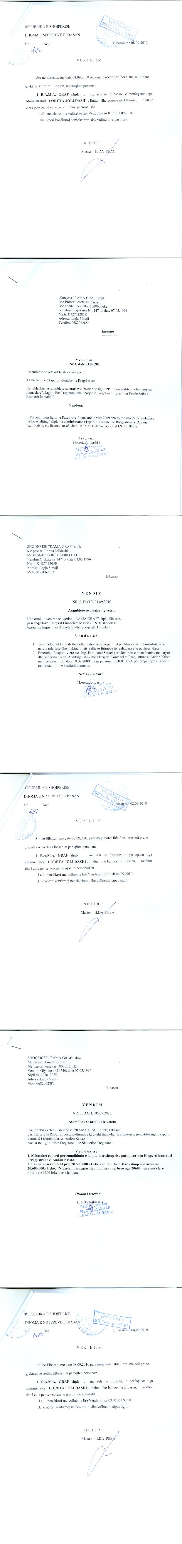 → Ekstrakti Historik i Regjistrit Tregtar date 19.10.2021 → Statuti i Shoqerise → Dokument per ndryshimin e zoteruesit ne datat 22.02.2005 dhe 30.12.2005 → Vendimi i ortakut te vetem date 04.09.2010 |