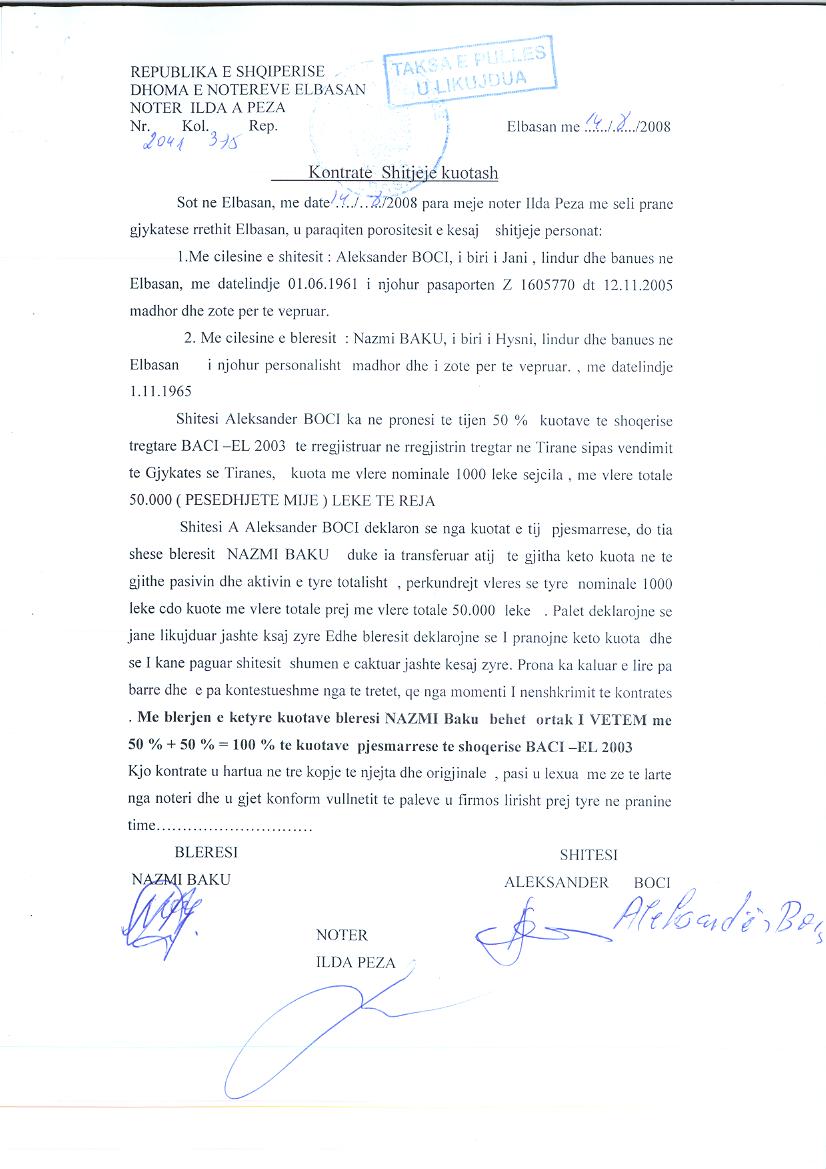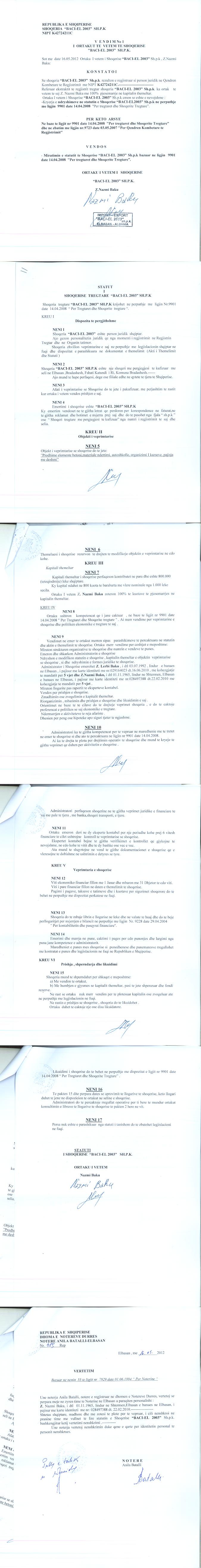 → Ekstrakti Historik i Regjistrit Tregtar date 01.11.2021 → Statuti i Shoqerise → Kontrate shitje kuotash 14.08.2008 → Vendim per zmadhimin e kapitalit 08.09.2010 |
