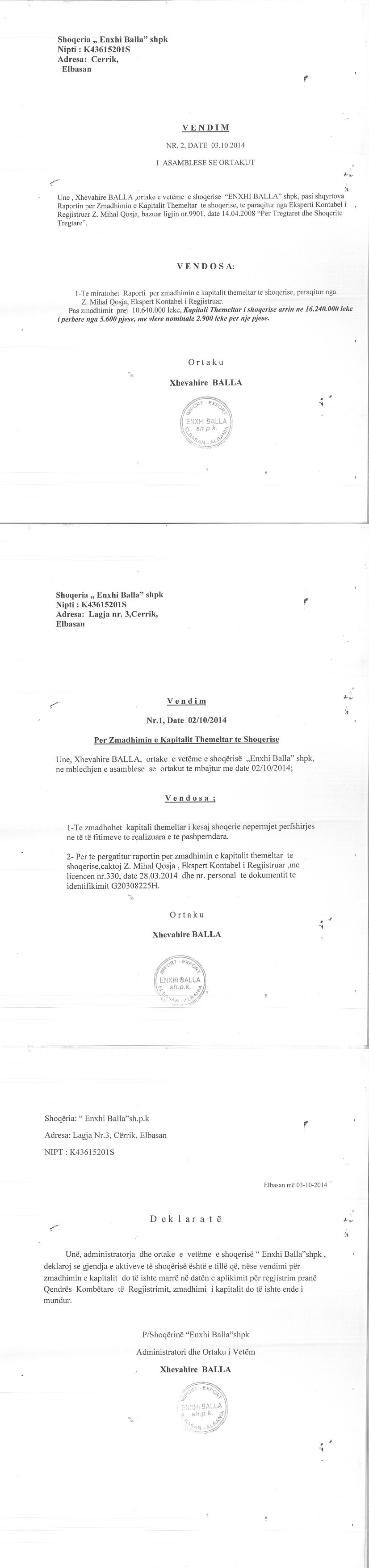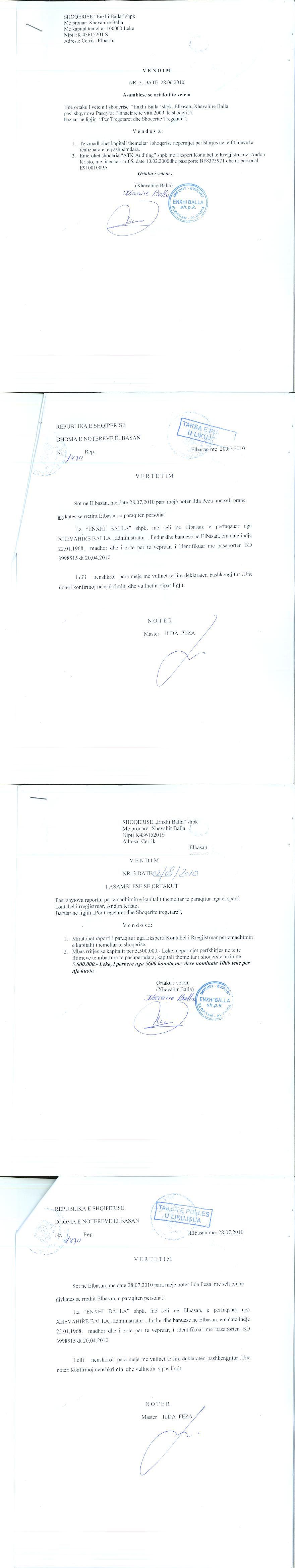 → Ekstrakt historik i regjistrit tregtar 16.11.2021 → Vendimi per zmadhimin e kapitalit 28.06.2010 → Vendimi per zmadhimin e kapitalit 03.10.2014 |