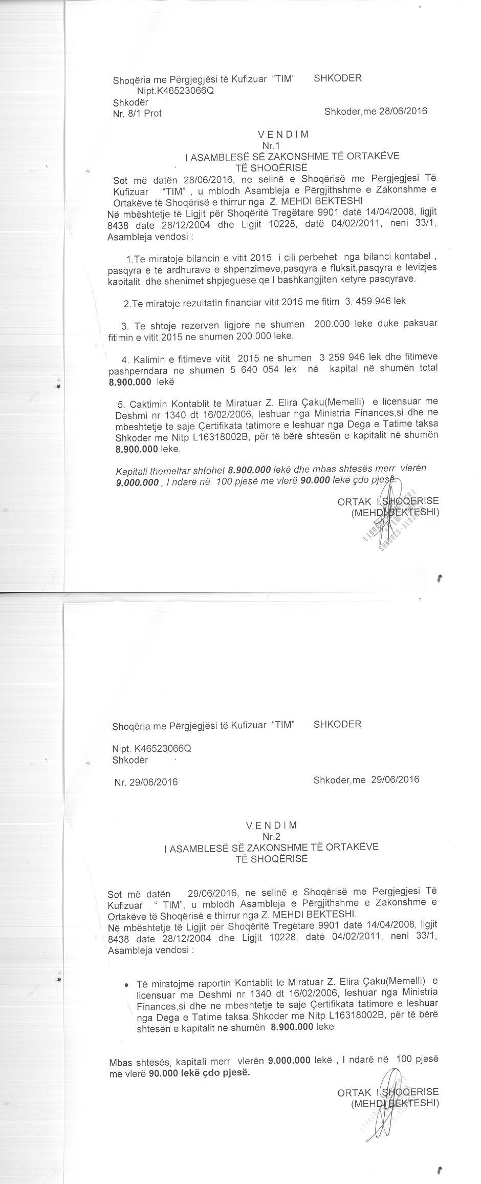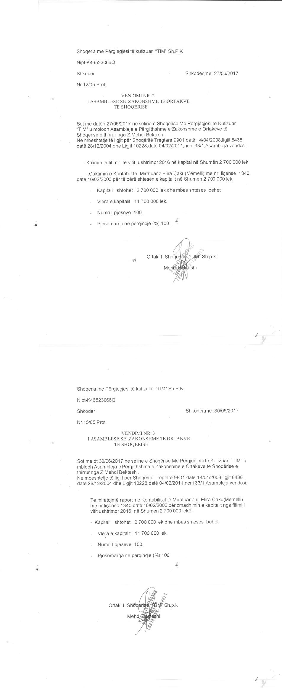 → Ekstrakti Historik i Regjistrit Tregtar date 30.09.2021 → Statuti i Shoqerise → Vendim i Asamblese se Pergjithshme per rritjen e kapitalit date 28.06.2016 → Vendim i Asamblese se Pergjithshme per rritjen e kapitalit date 27.06.2017 |