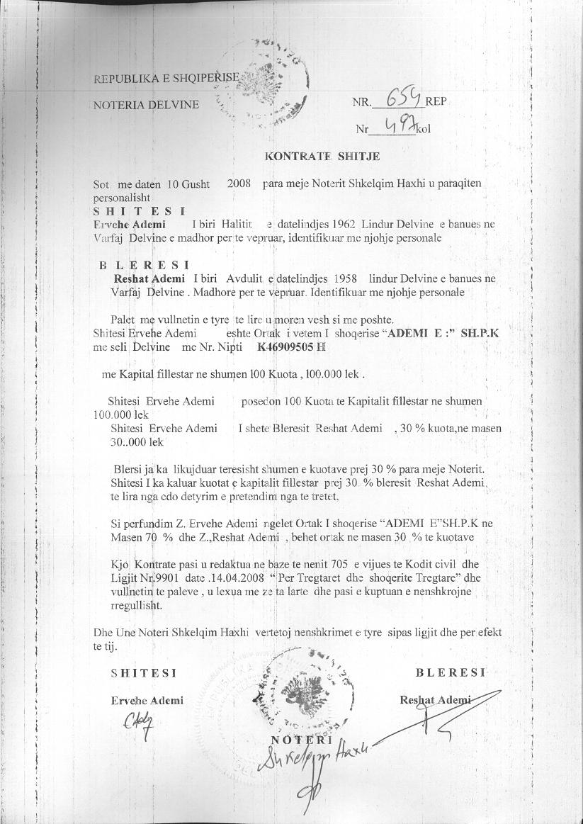 → Ekstrakti Historik i Regjistrit Tregtar date 23.02.2022 → Statuti i Shoqerise → Kontrate e Shitjes se Kuotave date 10.08.2008 |