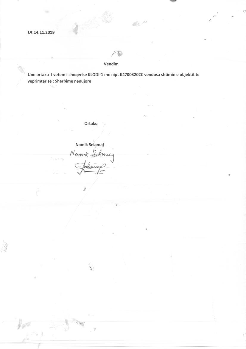 → Ekstrakt Historik i Regjistrit Tregtar, date 25.12.2021 → Dokumenta te ndryshem nder vite → Vendimi i ortakut te vetem, date 15.06.2018 → Vendimi i asamblese se pergjithshme, date 31.10.2018 → Vendimi i asamblese se pergjithshme, date 14.11.2019 → Pasqyra Financiate 2007 |
