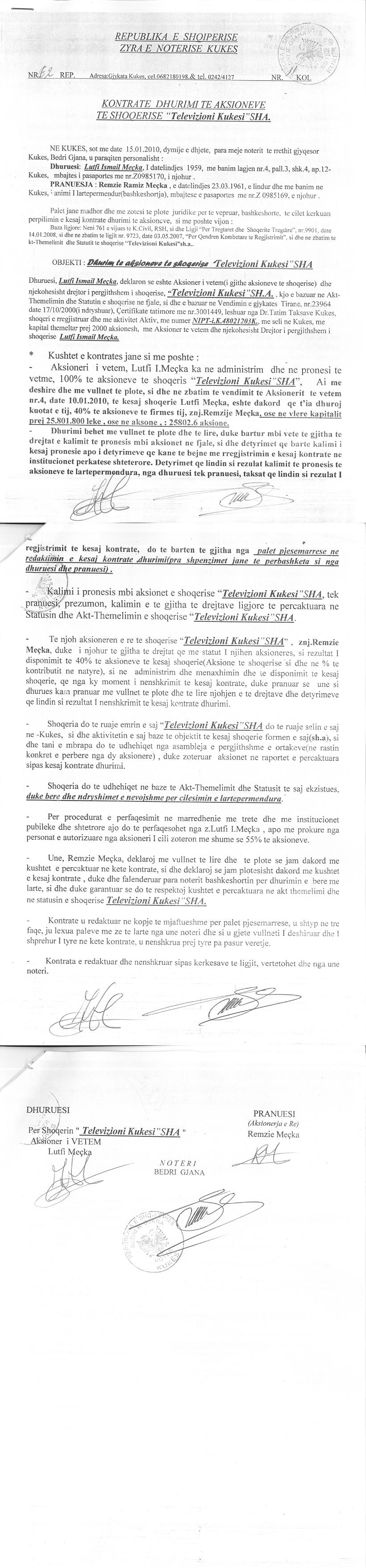 → Ekstrakti Historik I Regjistrit Tregtar date 03.08.2022 → Akt themelimi dhe Statuti i Shoqerise → Raport i Vecante per Vleresimin e Kontributeve ne Natyre date 20.05.2000 → Kontrate Pjesetimi Vullnetar date 20.12.2004 → Kontrate Dhurimi Aksionesh date 15.01.2010 → Ekstrakt Historik i Regjistrit Tregtar date 25.10.2023 |