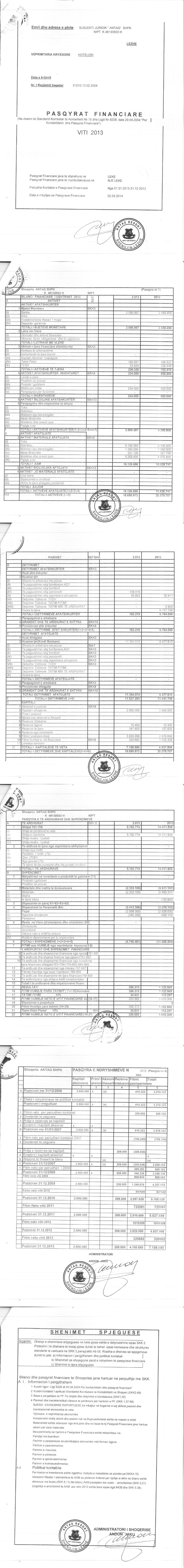 -921 689,00 Fitimi para Tatimit(Lekë) 2019: 6 768 114,00 Fitimi para Tatimit(Lekë) 2018: 4 167 100,00 Fitimi para Tatimit(Lekë) 2017: 6 627 917,00 Fitimi para Tatimit(Lekë) 2016: 3 058 753,00 Fitimi para Tatimit(Lekë) 2015: 755 641,00 Fitimi para Tatimit(Lekë) 2014: 546 631,00 Fitimi para Tatimit(Lekë) 2013: 356 313,00 Fitimi para Tatimit(Lekë) 2012: 1 122 565,00 Fitimi para Tatimit(Lekë) 2011: 802 290,00 Fitimi para Tatimit(Lekë) 2009: 1 010 714,00 Fitimi para Tatimit(Lekë) 2008: 765 869,00 |