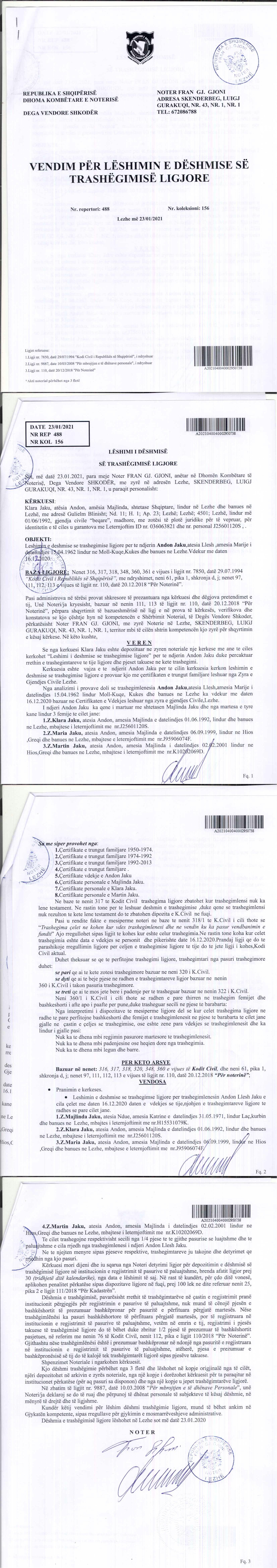 → Ekstrakti Historik i Regjistrit Tregtar date 16.12.2021 → Statuti i Shoqerise → Deshmi Trashegimie date 23.01.2021 |