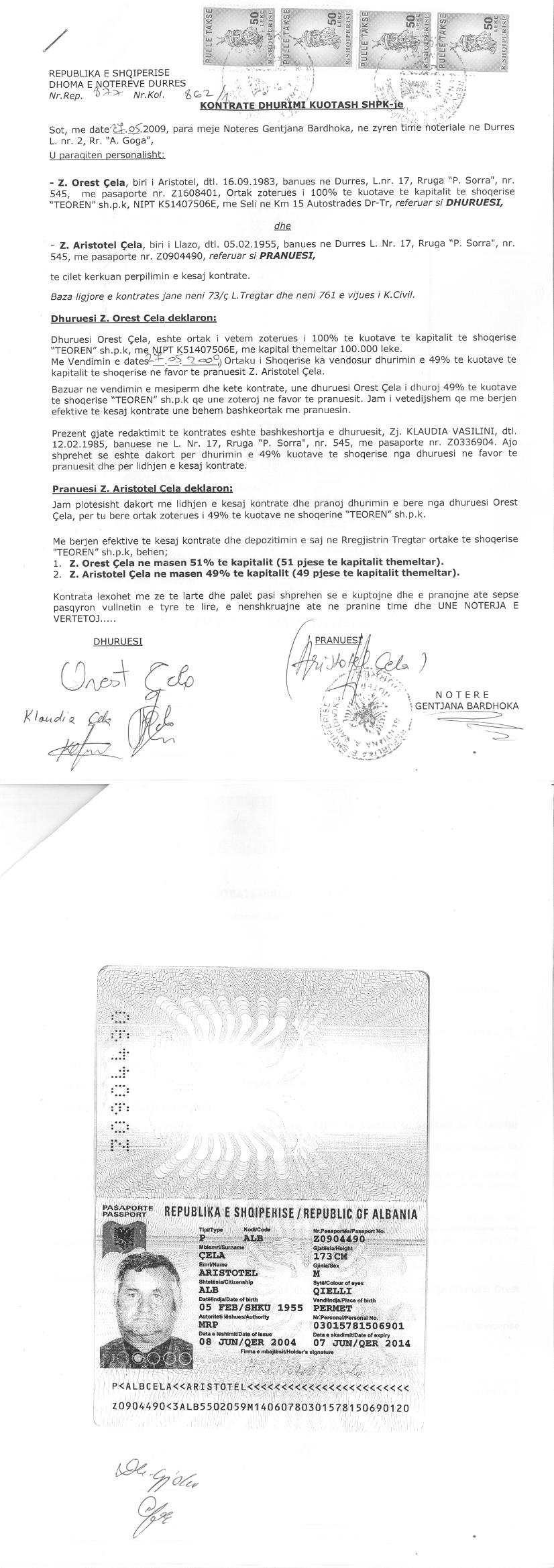 → Ekstrakt historik i regjistrit tregtar 08.02.2021 → Akti i themelimit dhe statuti → Kontrate shitje kuotash 25.11.2014 → Kontrate dhurimi kuotash 27.05.2009 → Vendimi i ortakut per rritjen e kapitalit 17.06.2014 |