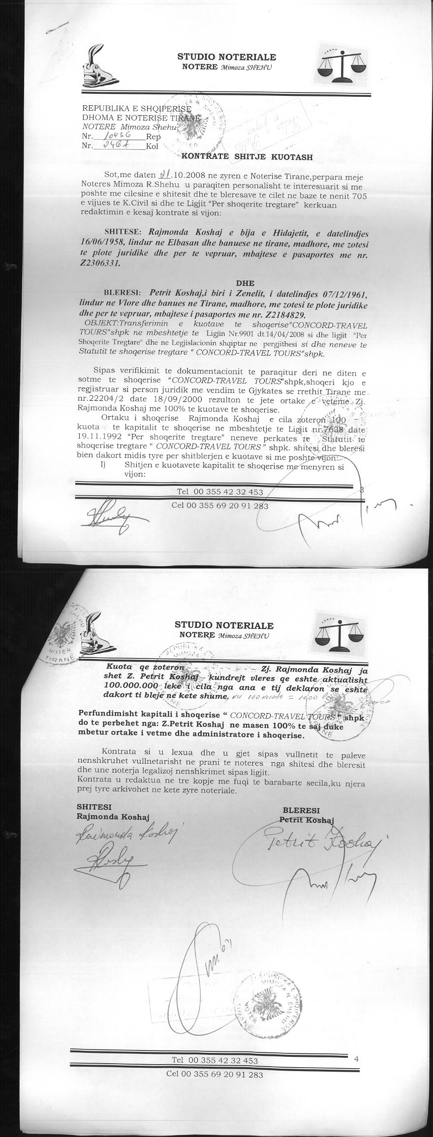 → Ekstrakt historik i regjistrit tregtar date 01.12.2021 → Akti i themelimit dhe statuti → Kontrate shitblerje date 26.08.2000 → Kontrate shitje kuotash date 21.10.2008 |