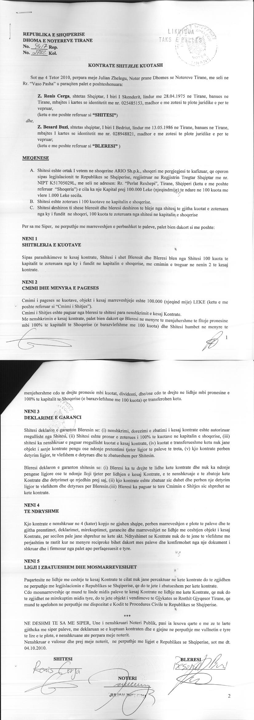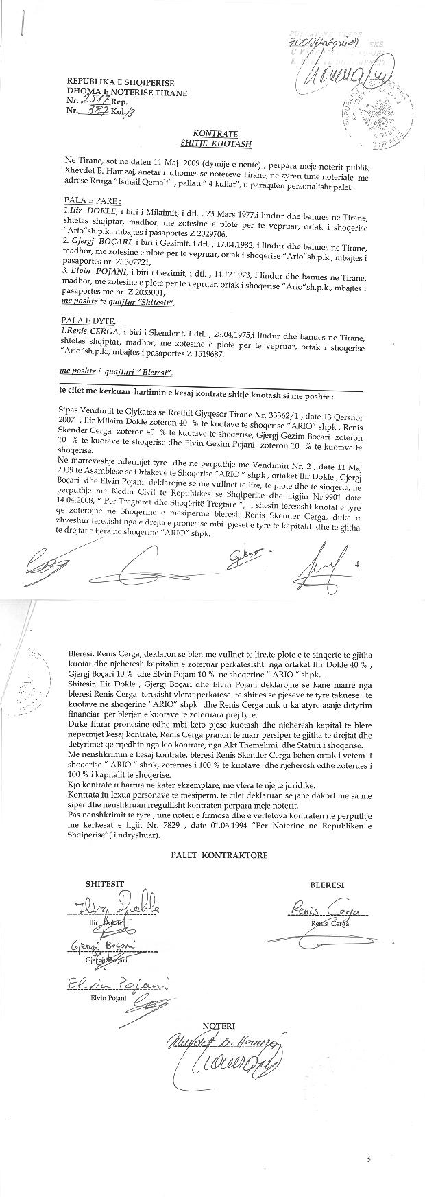 → Ekstrakti Historik i Regjistrit Tregtar date 20.05.2024 → Vendimi per regjstrimin e shoqerise dhe dokumenta te ndryshem → Kontrate e shitjes se Kuotave date 11.05.2009 → Kontrate e shitjes se Kuotave date 04.10.2010 → Ekstrakt Historik i Regjistrit Tregtar date 26.09.2025 |