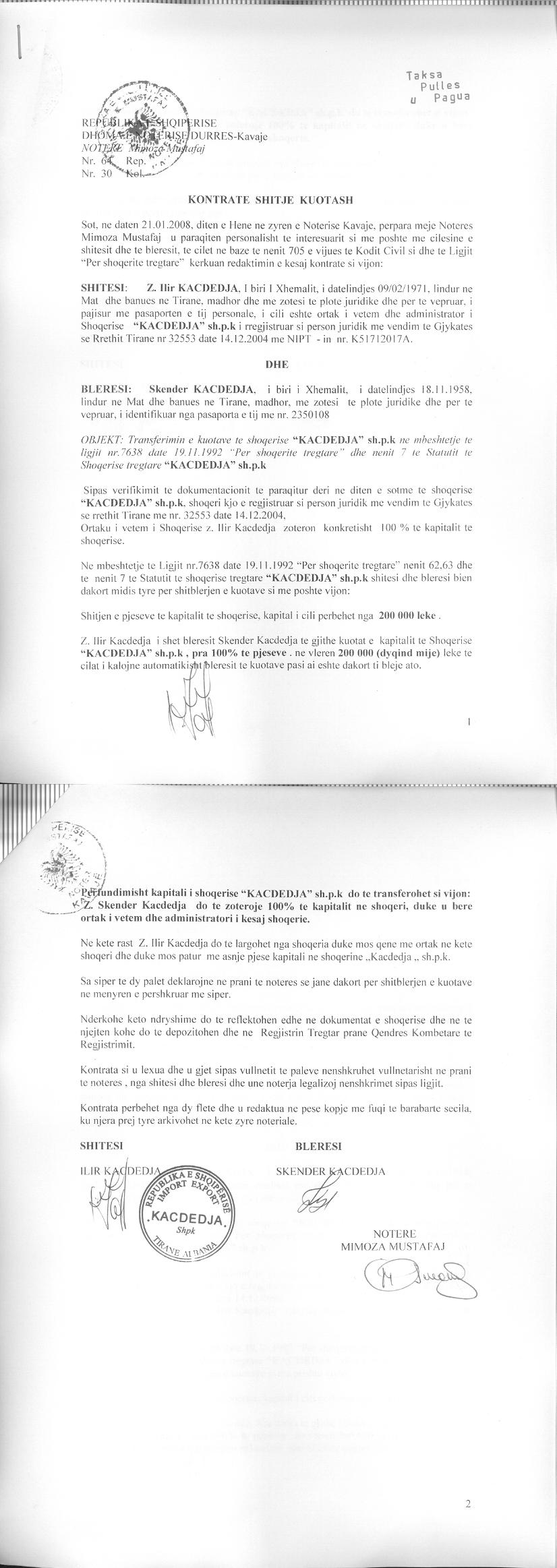 → Ekstrakt historik i regjistrit tregtar 08.06.2022 → Akti i themelimit dhe statuti i shoqerise → Vendimi i ortakut te vetem per zmadhimin e kapitalit 04.07.2017 → Kontrate shitje kuotash 21.01.2008 → Vendimi i ortakut te vetem per zmadhimin e kapitalit 08.04.2014 → Vendim i ortakut te vetem per zmadhimin e kapitalit 21.09.2020 → Ekstrakti Historik i Regjistrit Tregtar date 02.05.2023 → Ekstrakt Historik i Regjistrit Tregtar date 11.08.2023 → Ekstrakt Historik i Regjistrit Tregtar date 09.12.2024 |