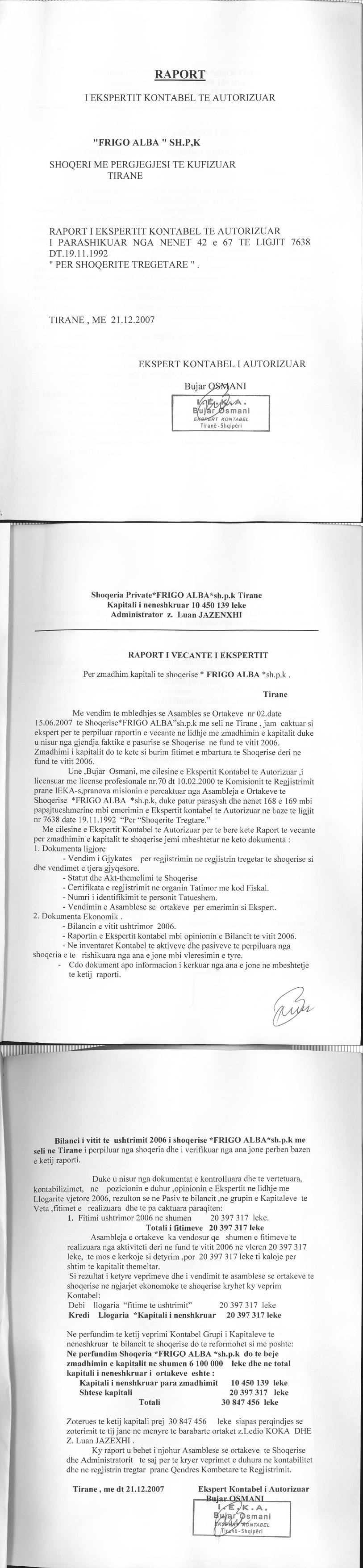 Raport i ekspertit kontabel per zmadhimin e kapitalit 21.12.2007