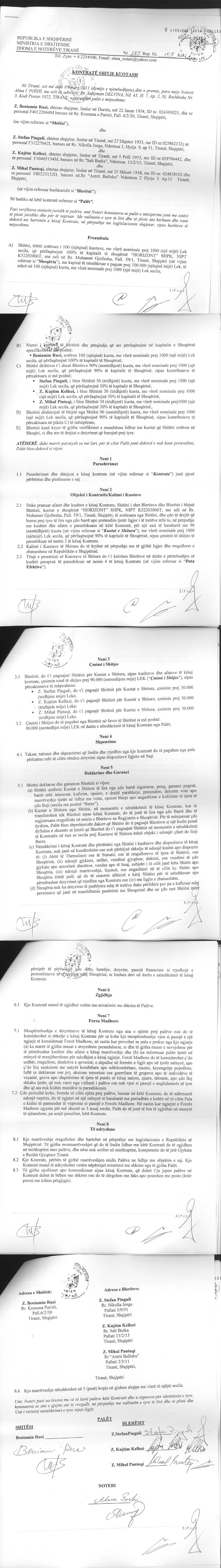 → Ekstrakt Historik i Regjistrit Tregtar date 19.07.2025 → Akt themelimi dhe Statuti i Shoqerise → Kontratë Shitje Kuotash datë 04.03.2011 → Kontratë Shitje Kuotash datë 20.12.2013 → Kontratë Dhurimi Kuotash datë 26.12.2013 → Kontratë Shitje Kutoash Kapitali datë 18.04.2023 → Vendim Nr. 33, datë 25.09.2024 i Këshillit Kombëtar të Territorit për Miratimin e Lejes së Zhvillimit për Objektin: “Kashar Masterplan”, Strukturë Banimi dhe Shërbimesh 5, 12 dhe 22 Kate mbi Tokë dhe 3 Kate Parkimi Nëntokë, me Vendndodhje në Bashkinë Tiranë. |